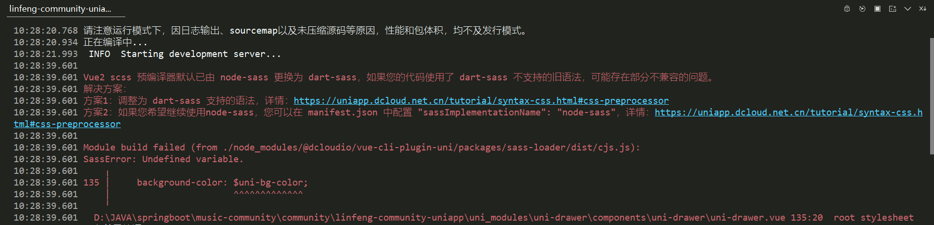 答:V1.21.0以及之前的用户,把HBuilderX升级4.56+后的版本,启动项目会报如图的错。(注意:2025.04.30之后的V1.21.0采购客户可以忽略,代码已完成适配)