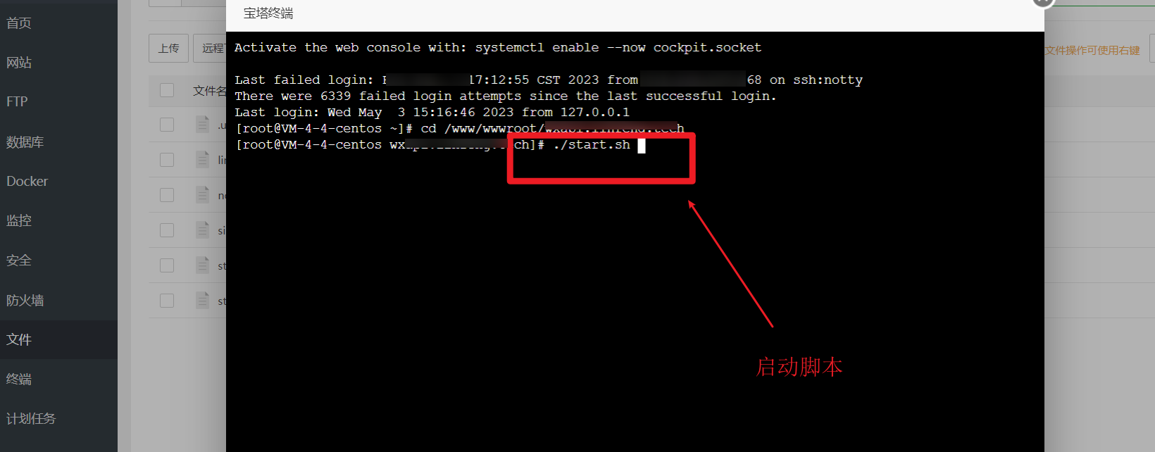 先上传项目文件夹中的shell文件夹下的start.sh和stop.sh文件至同级目录,如上图所示。