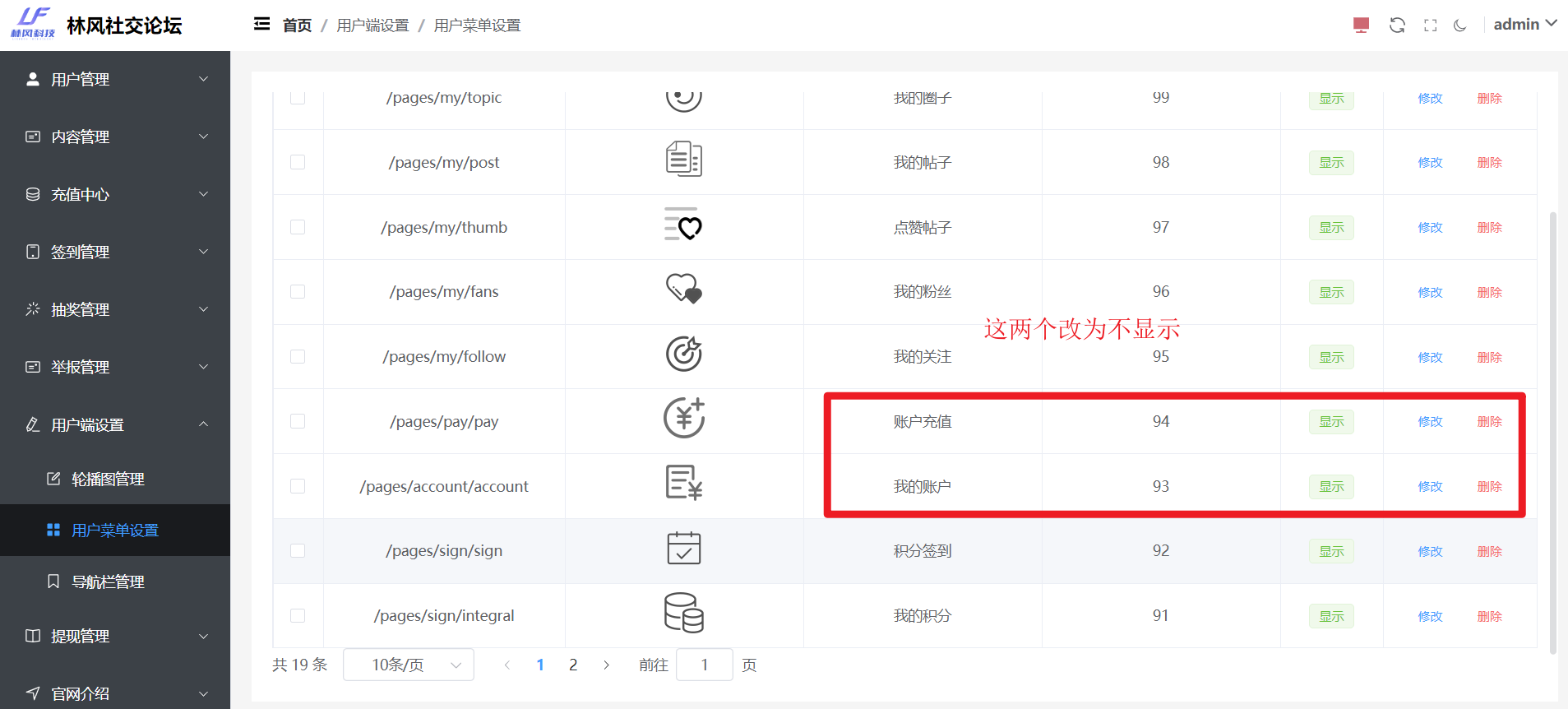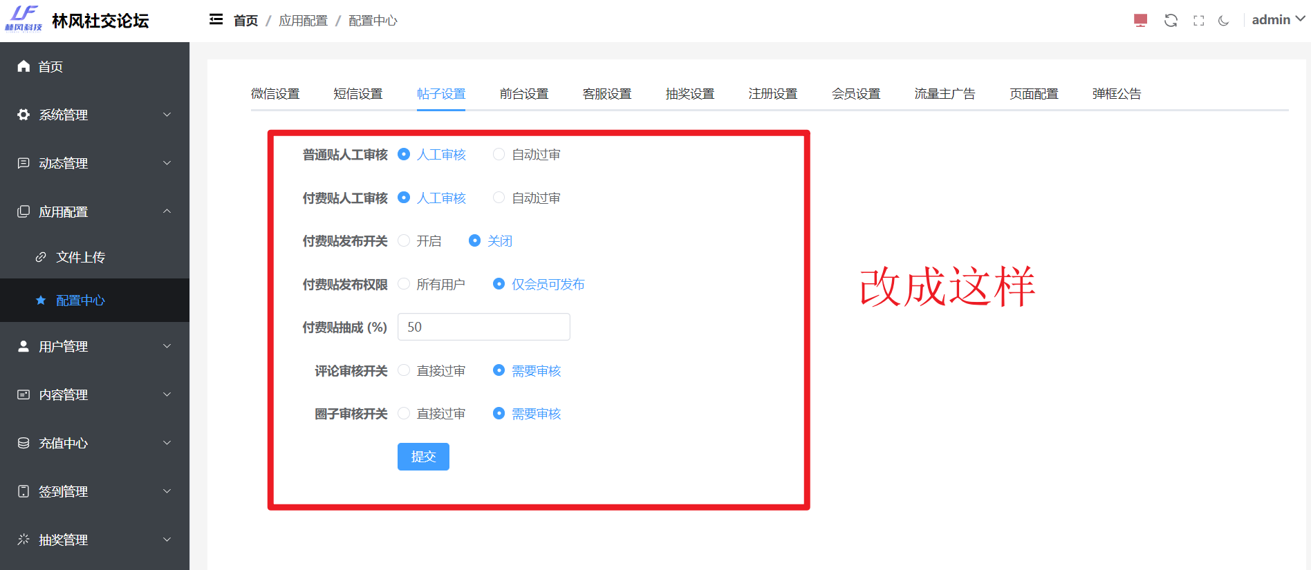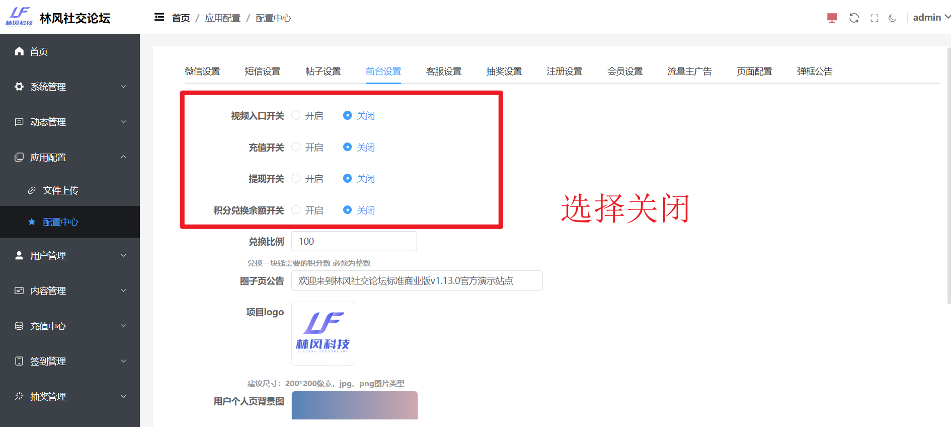 管理端前端设置如下图: