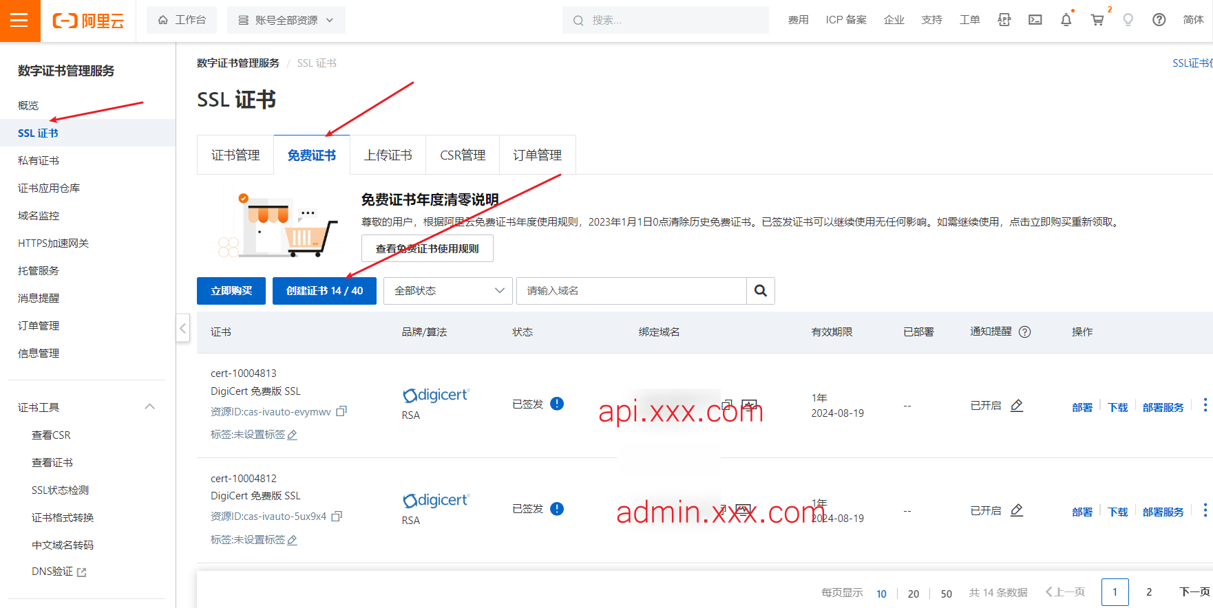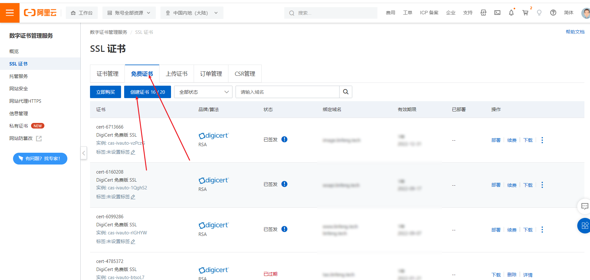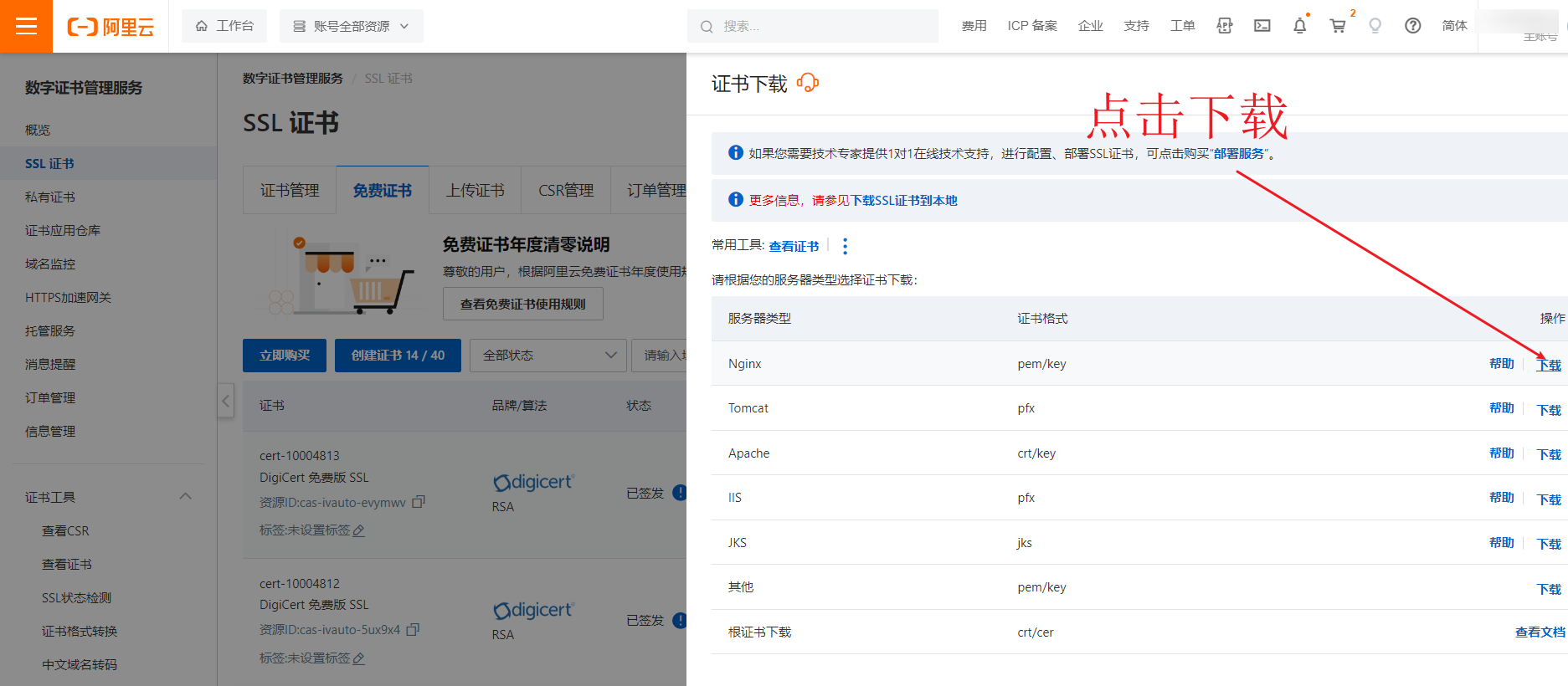 这里以阿里云SSL证书为例:
