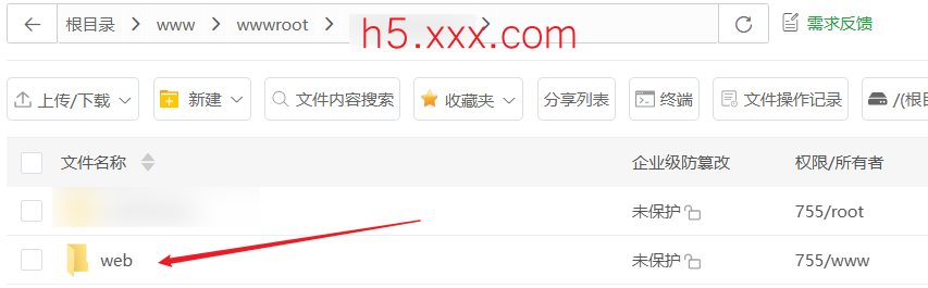 **对于H5端**,上传的是web文件夹(放到h5.xxx.com目录下)。