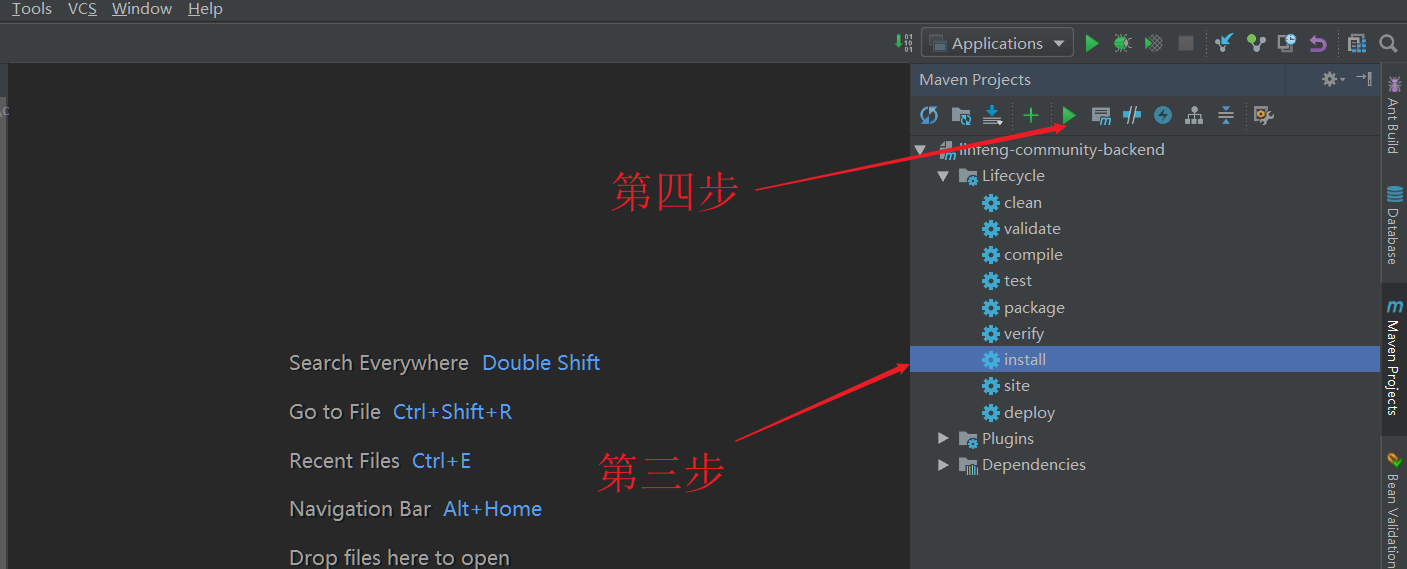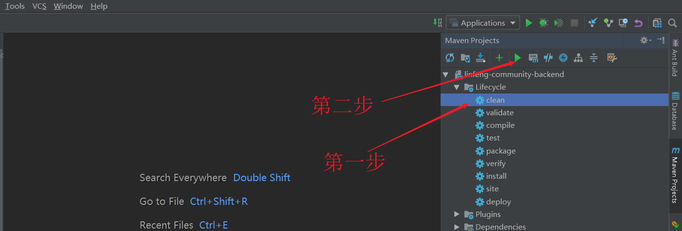 下面介绍基于IDEA工具对后端backend项目打包的方式。首先确保application-prod.yml中正确配置了数据库账号密码等信息。打开IDEA侧边栏,如下图,对maven先clean再install,找到target下的jar包上传到服务器。