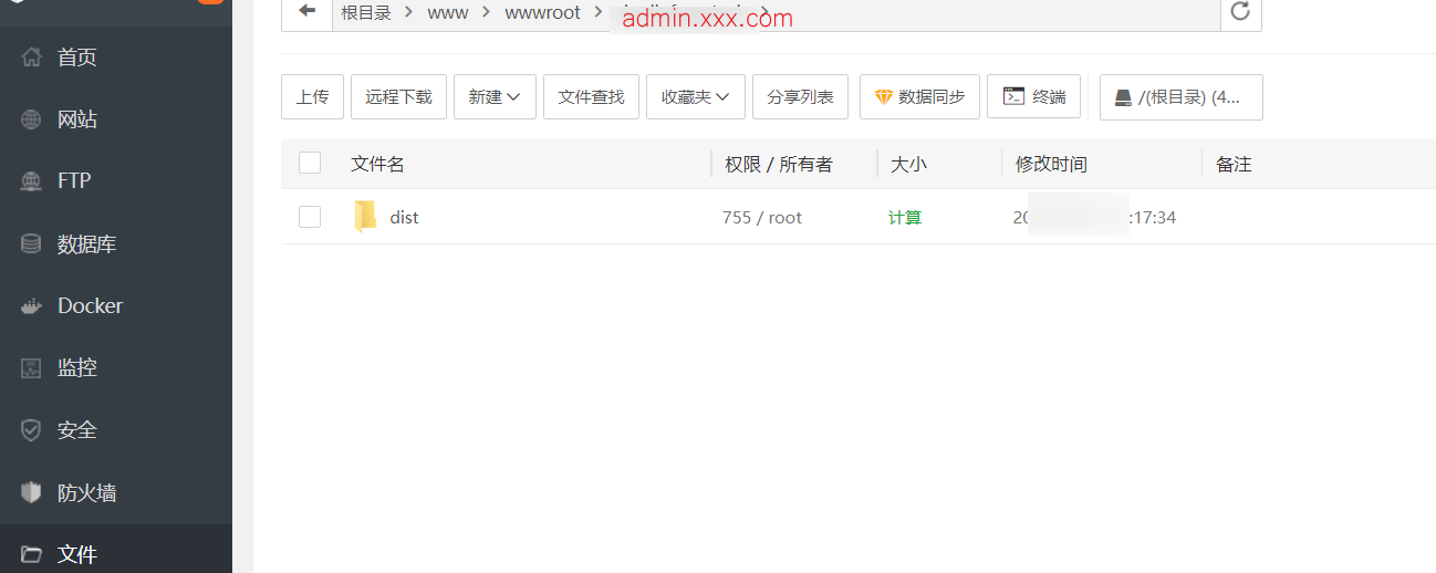 **对于后台前端**,上传的是dist文件夹(放到admin.xxx.com目录下)。