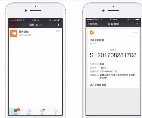* 用户在小程序里购买了商品,小程序可以将商品物流的情况,实时发送给用户。
