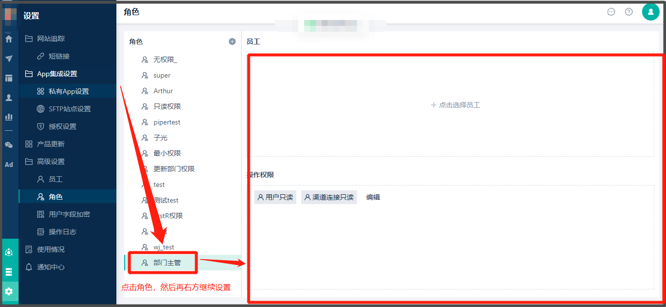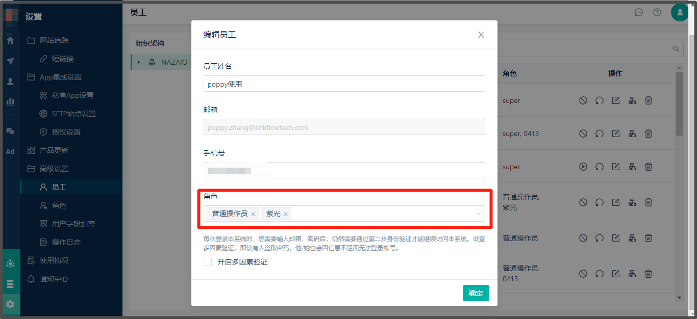 使用【高级员工】账号登录[Linkflow](https://app.linkflowtech.com/)后,角色权限分配