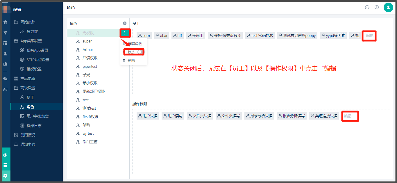 2. 停用状态角色的员工、员工权限也不能编辑
