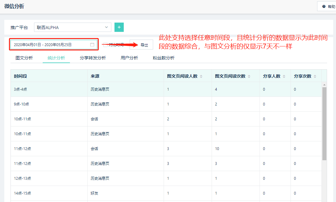 * **根据微信规则,图文分析的数据最多显示为7天的数据!**
