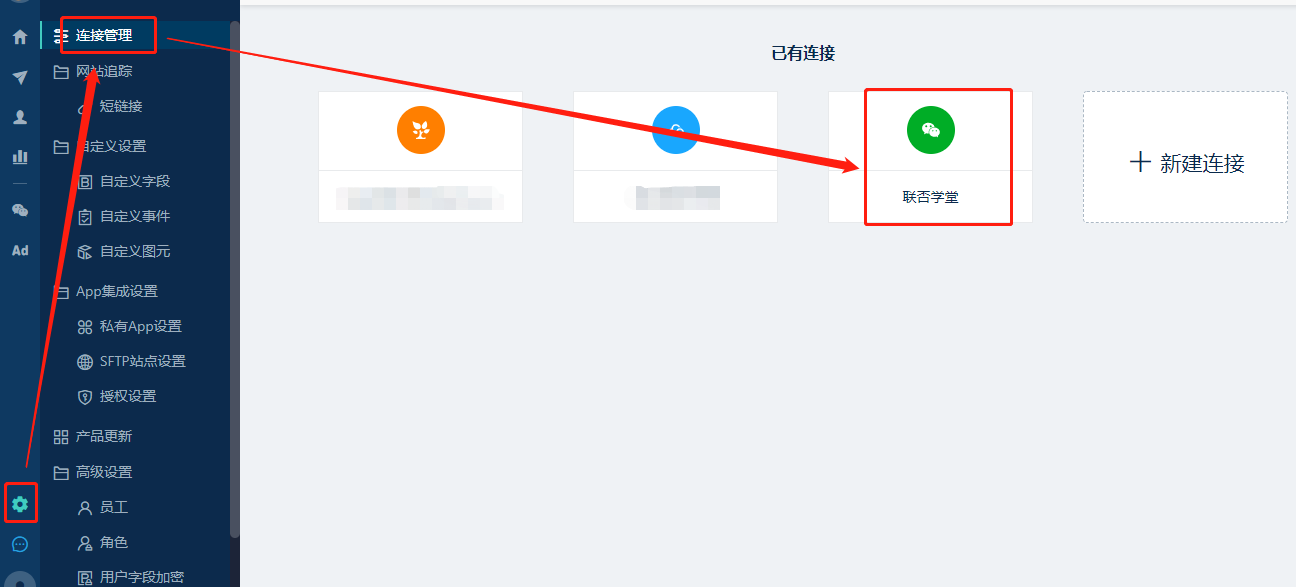 ②若当前时间已超过8点,则进入该微信公众号的连接详情页,【设置】-【连接管理】,找到对应的微信公众号,点击后进入连接详情页面。