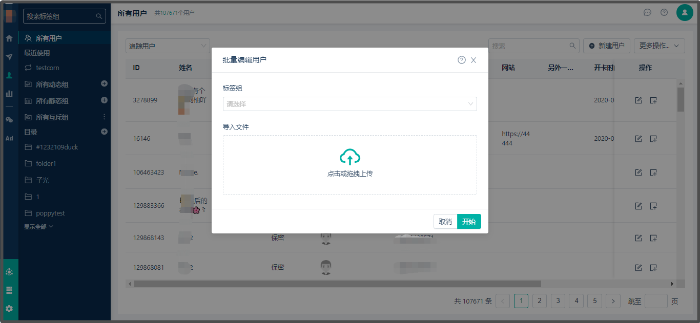 * 上传您已经编辑过的xslx文档,同时可选择将这批用户加入到静态标签组(非必选)