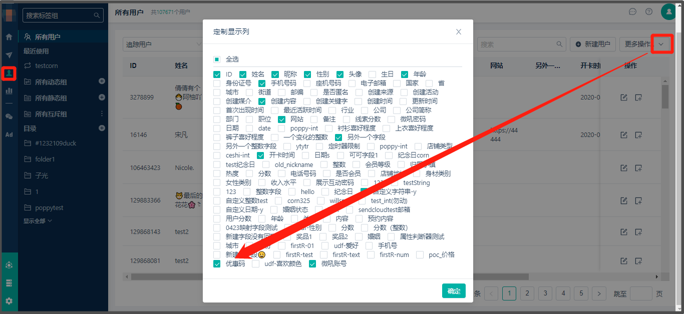 * 您需要先在[Linkflow](https://app.linkflowtech.com/)中创建“优惠码”自定义字段,这样导出的用户xslx中会有“优惠码”列,您会在接下来的步骤中在此列进行“优惠码”的批量更新[用户属性](../%E8%87%AA%E5%AE%9A%E4%B9%89%E5%AD%97%E6%AE%B5.md)-在用户属性中添加自定义字段