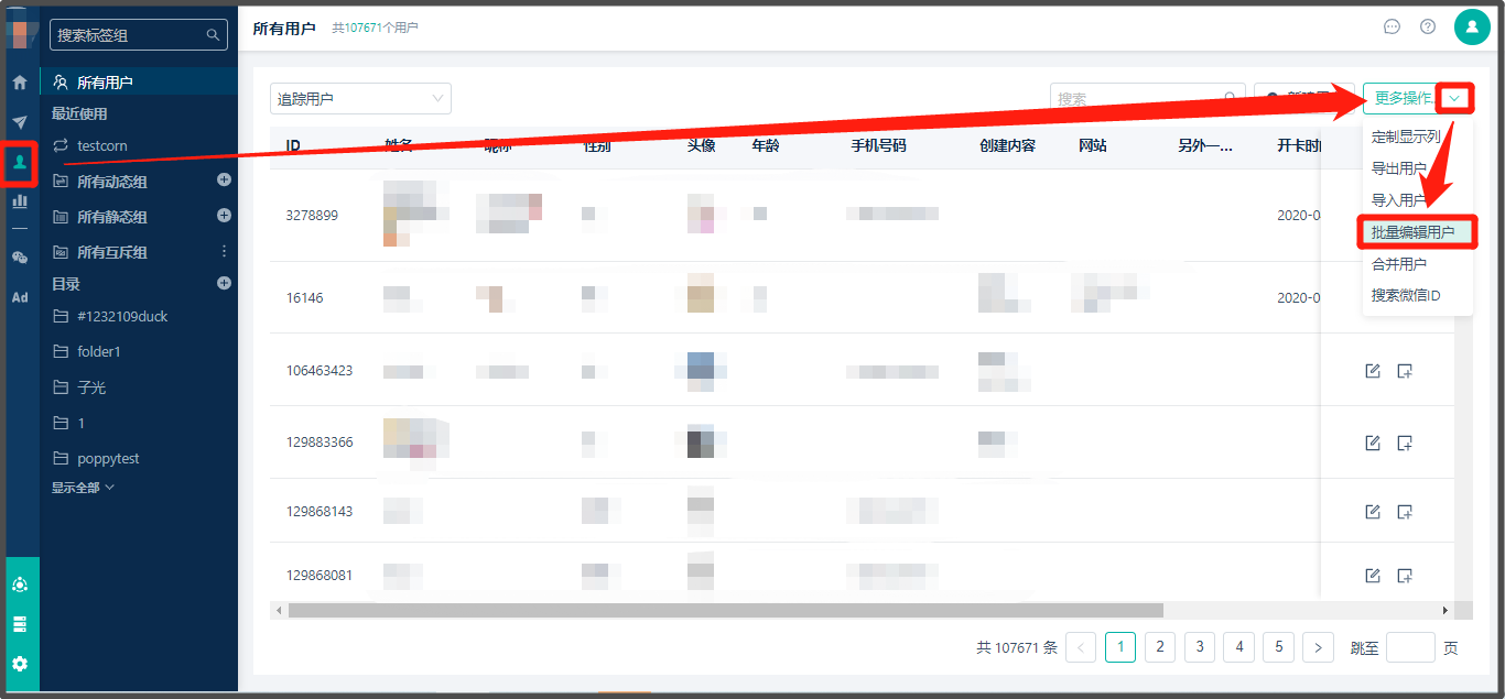 * 操作路径:在【用户】-【更多操作】,点击【批量编辑用户】