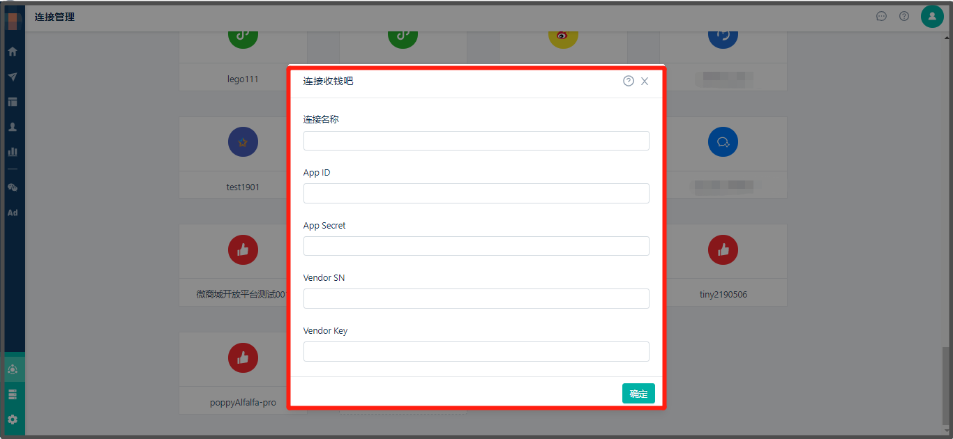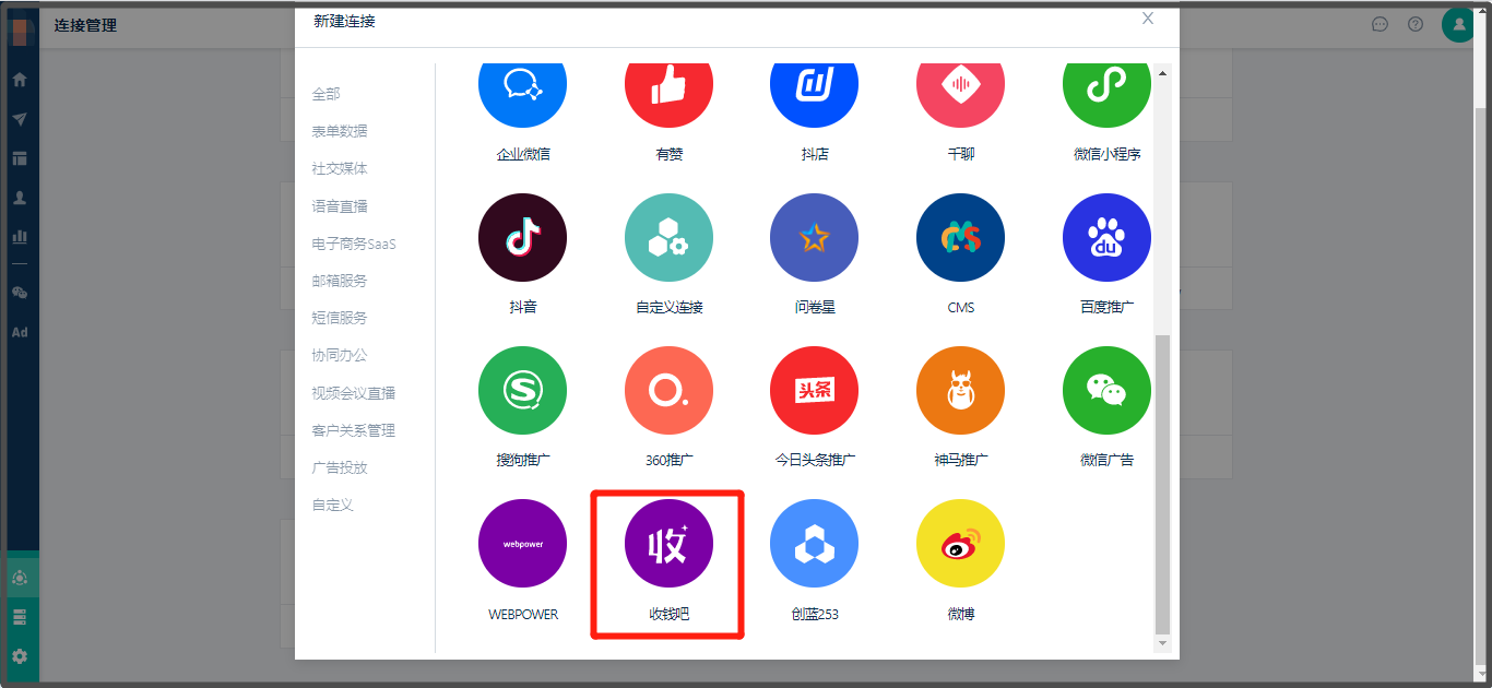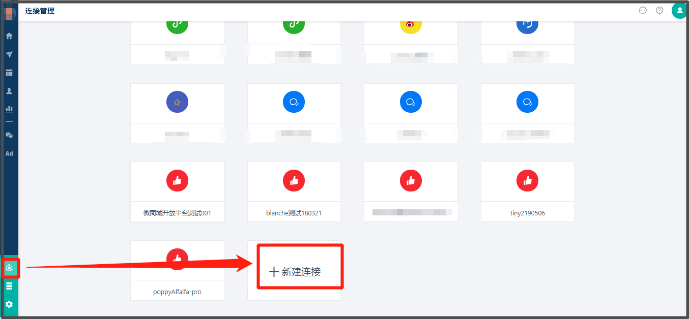 * 路径:【连接管理】-【创建连接】,如下所示: