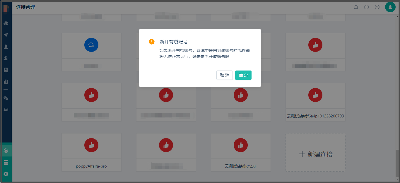 1. 在有赞设置页,点击需解绑有赞账号右侧操作栏【删除】按钮 ,系统弹框显示解绑说明
