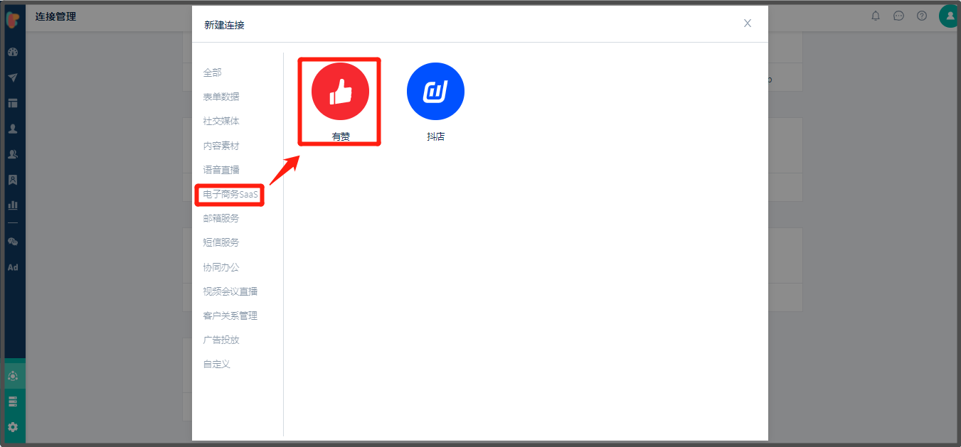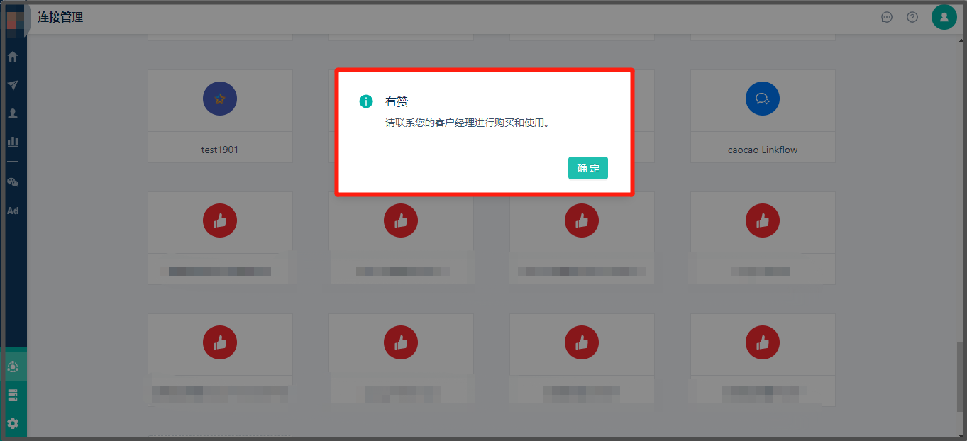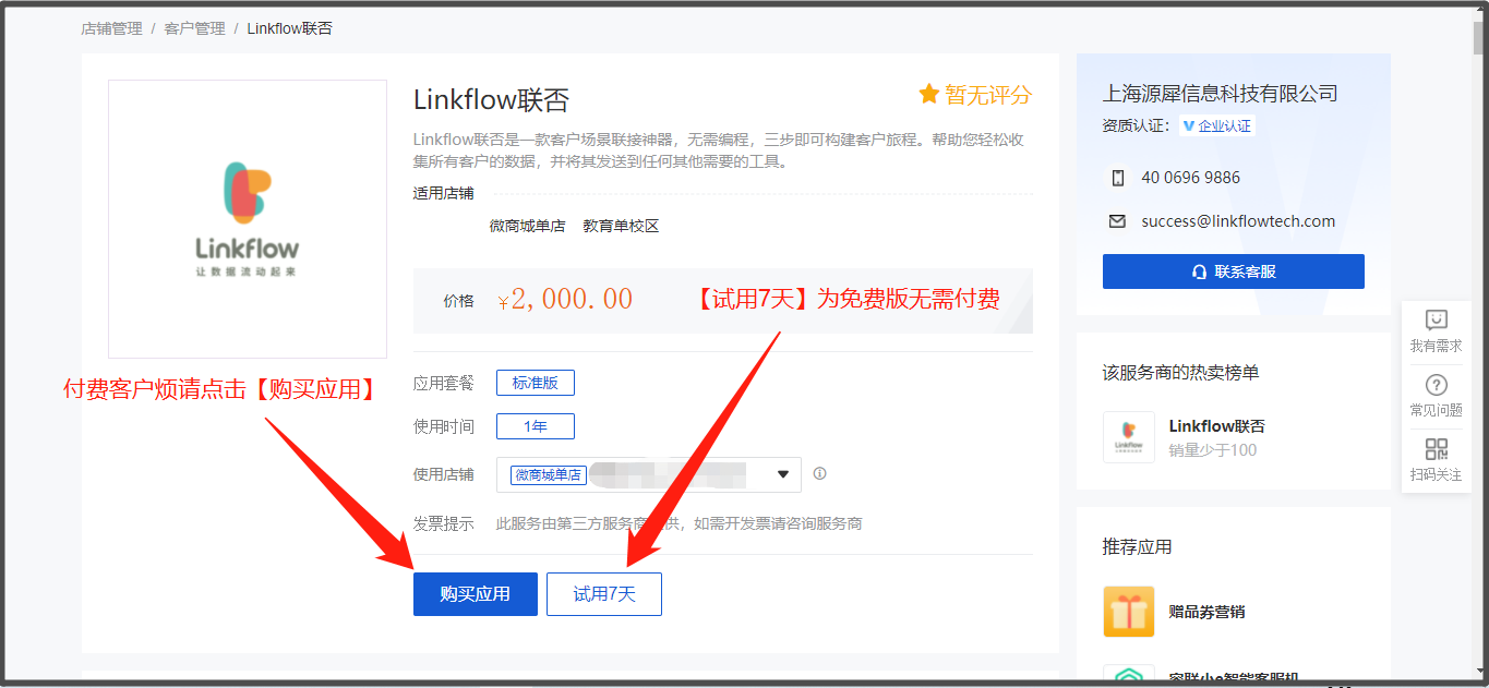 1. 点击创建有赞连接,在弹框中跳转有赞应用市场进行购买(付款时请联系Linkflow客服)