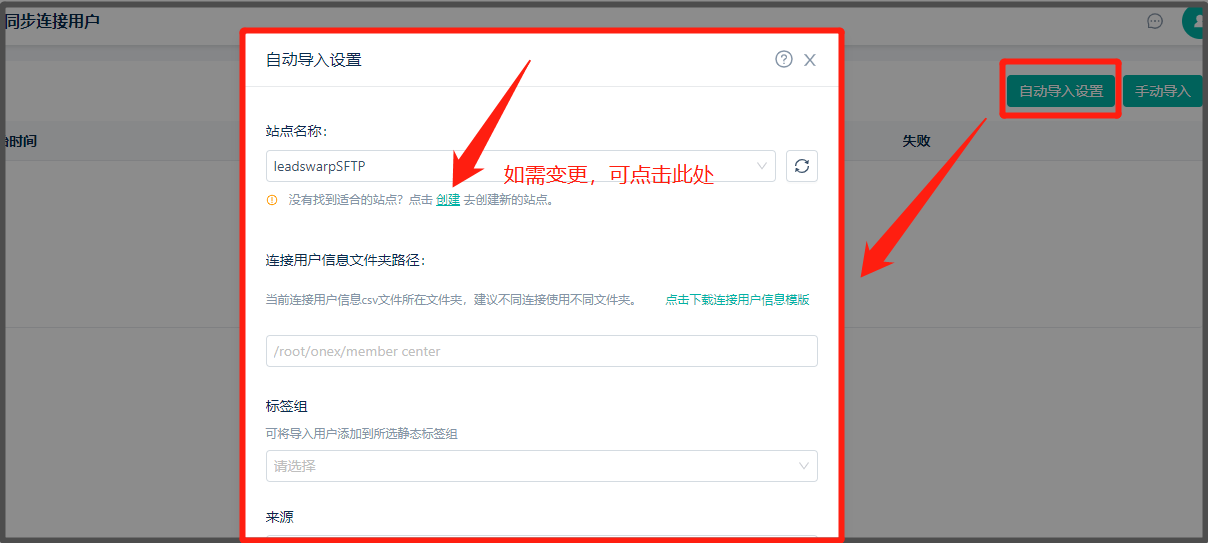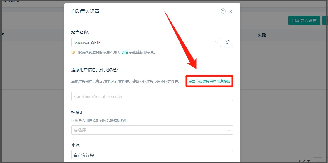 SFTP站点名称可以点击此处查看[SFTP站点设置](../APP%E9%9B%86%E6%88%90%E8%AE%BE%E7%BD%AE/%E7%AB%99%E7%82%B9%E8%AE%BE%E7%BD%AE.md)