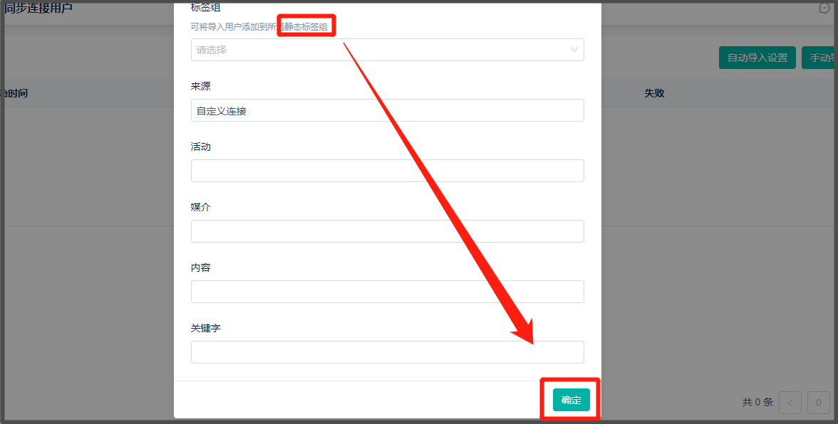* 目前支持【同步连接用户】的应用分别是:[自定义连接](../%E8%BF%9E%E6%8E%A5%E7%AE%A1%E7%90%86/%E8%87%AA%E5%AE%9A%E4%B9%89%E6%B8%A0%E9%81%93.md)、驿氪、微信小程序