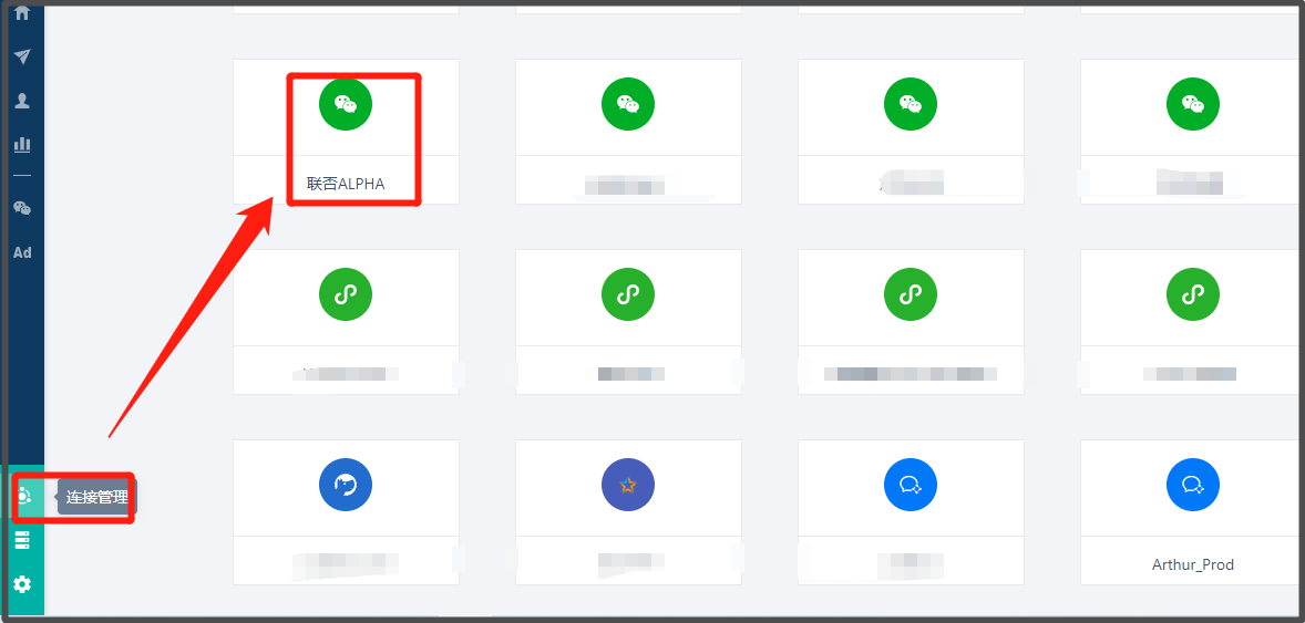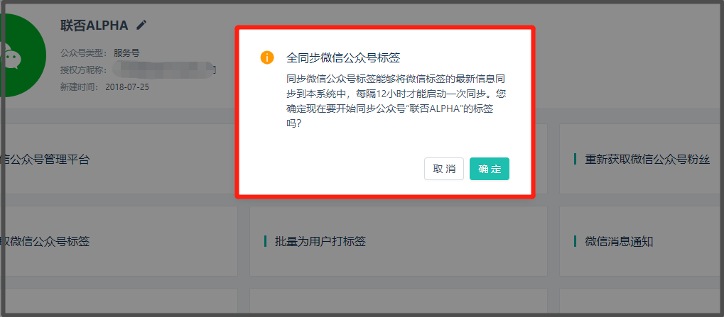 * 路径:**【连接管理】> 选择[微信公众号](https://mp.weixin.qq.com) > 重新获取微信公众号标签**