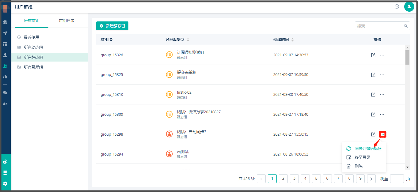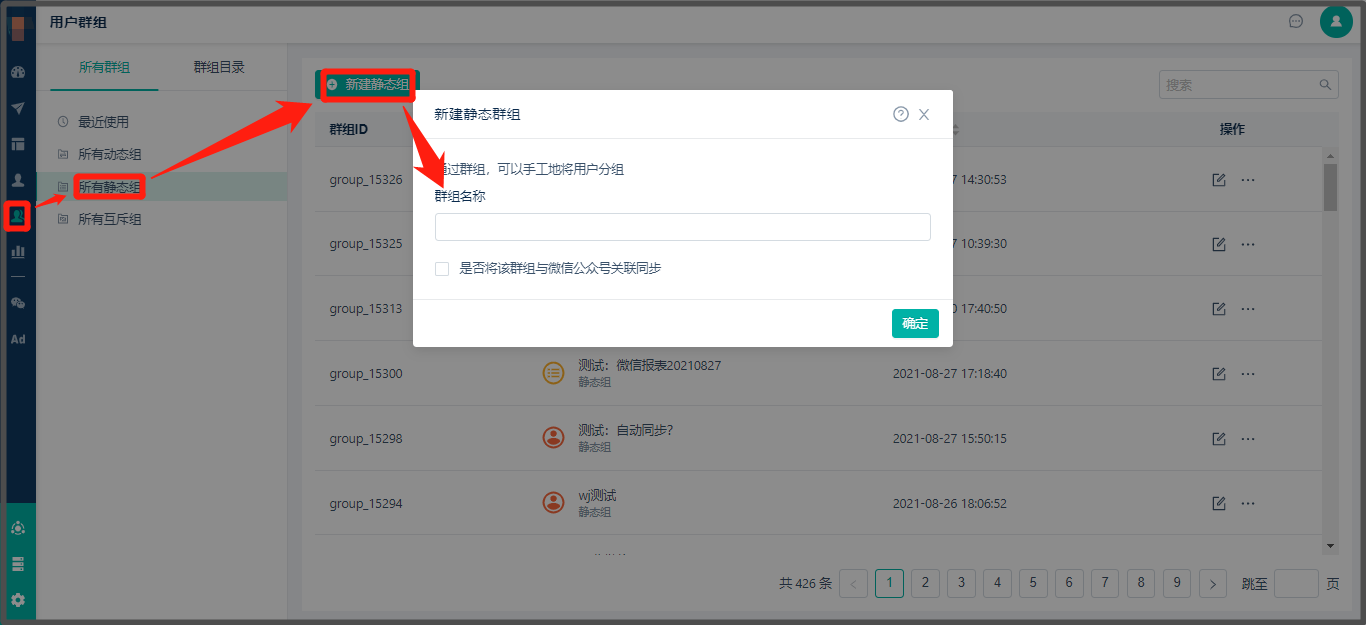 * 创建路径:【用户和标签】> 【所有静态组】> 点击 > 创建静态标签组并打“√”