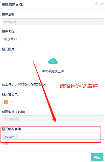 默认图元的触发事件包含自定义渠道的系统事件,您也可以通过编辑默认图元,添加在此自定义渠道创建的自定义事件([事件元数据](%E4%BA%8B%E4%BB%B6%E5%85%83%E6%95%B0%E6%8D%AE.md)),作为默认图元的触发事件。