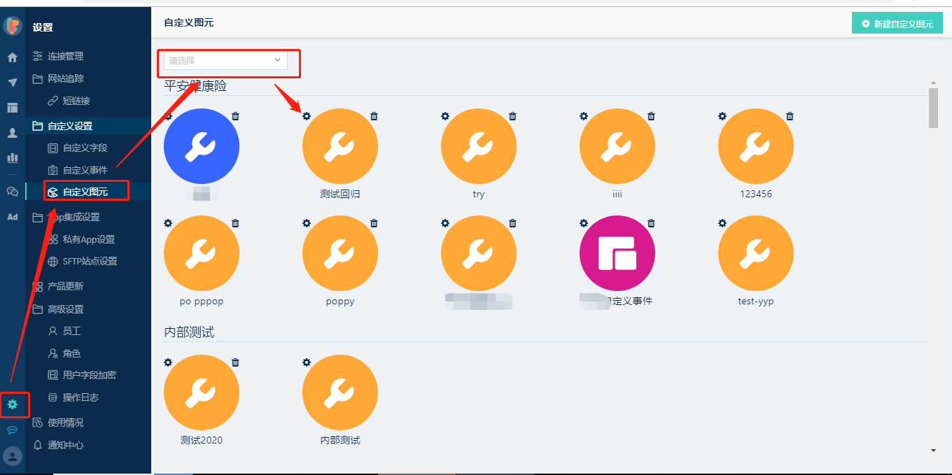 * 路径:【设置】-【连接管理】-【自定义渠道】-【自定义图元】