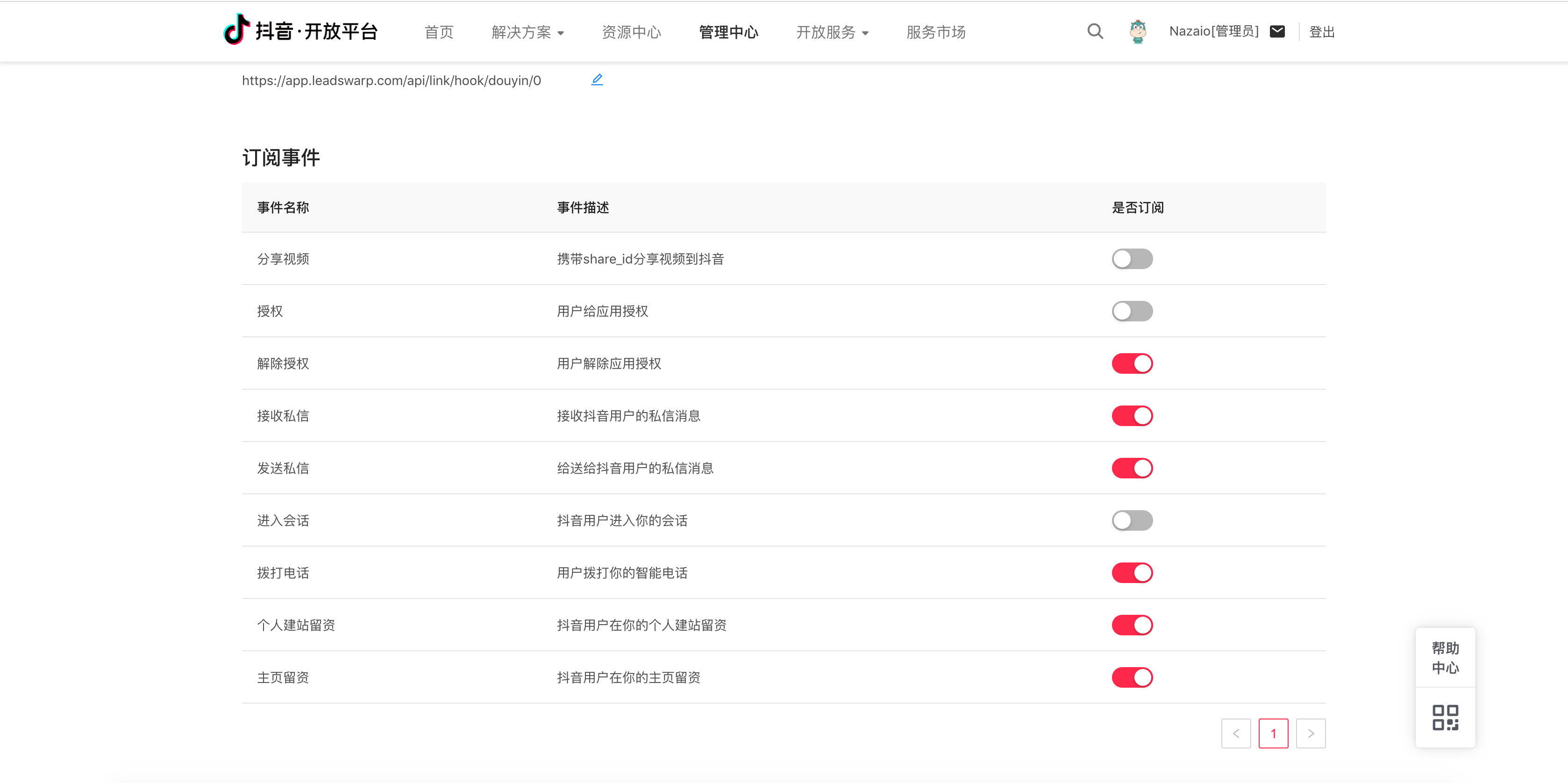 为了能够接收到抖音Webhooks推送的互动事件,需要先配置请求网址URL,具体操作如下: