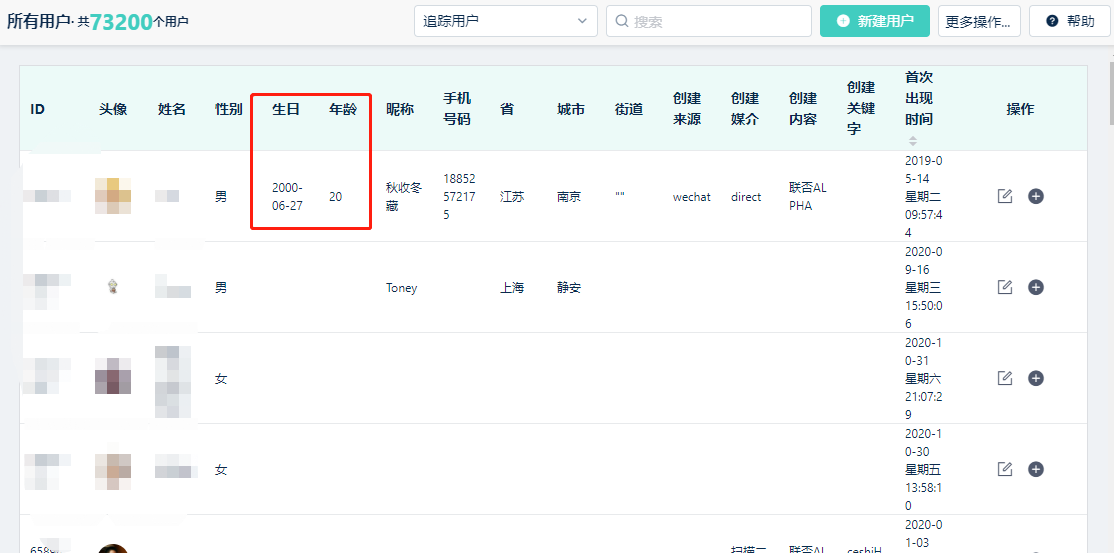 * 注:在Linkflow中的用户有显示生日的,系统会自定计算出年龄,但是小程序自带的生日等,暂时无法同步到Linkflow。