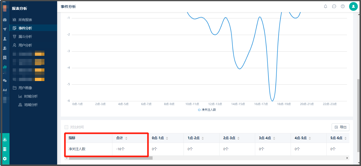 如定义了【自定义指标】=关注人数【-2】,则【自定义指标】的合计为关注人数【-2】,而非关注人数【-2】时间切片数。