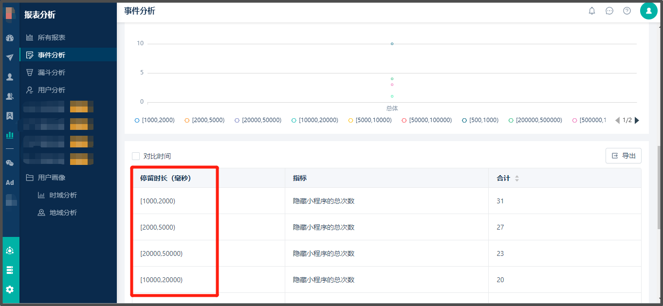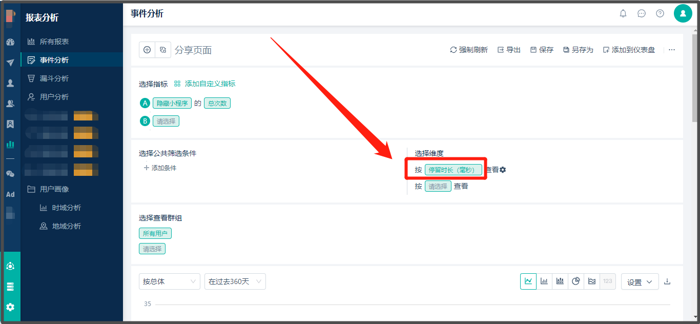 * 注:如果选择【停留时长】,时长单位为【毫秒】