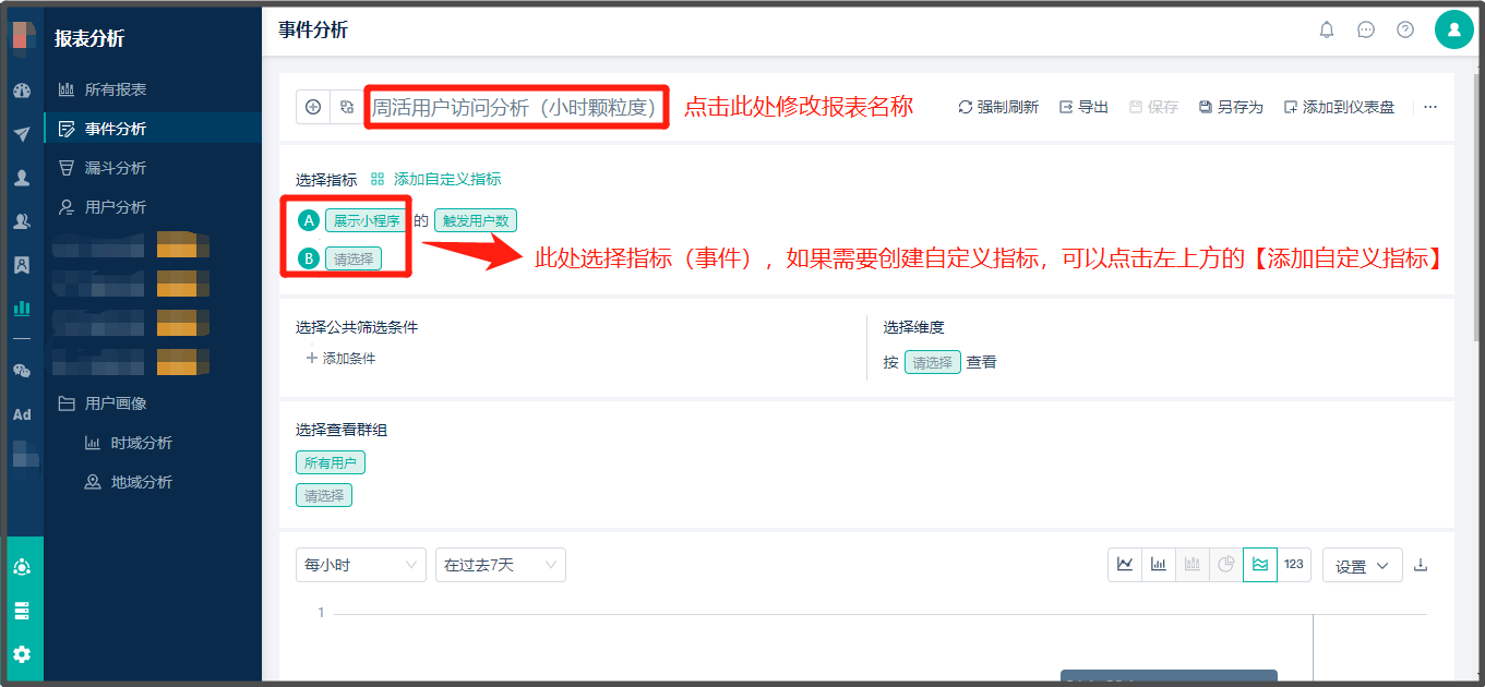 * 路径【报表分析】-【事件分析】进入事件分析界面。