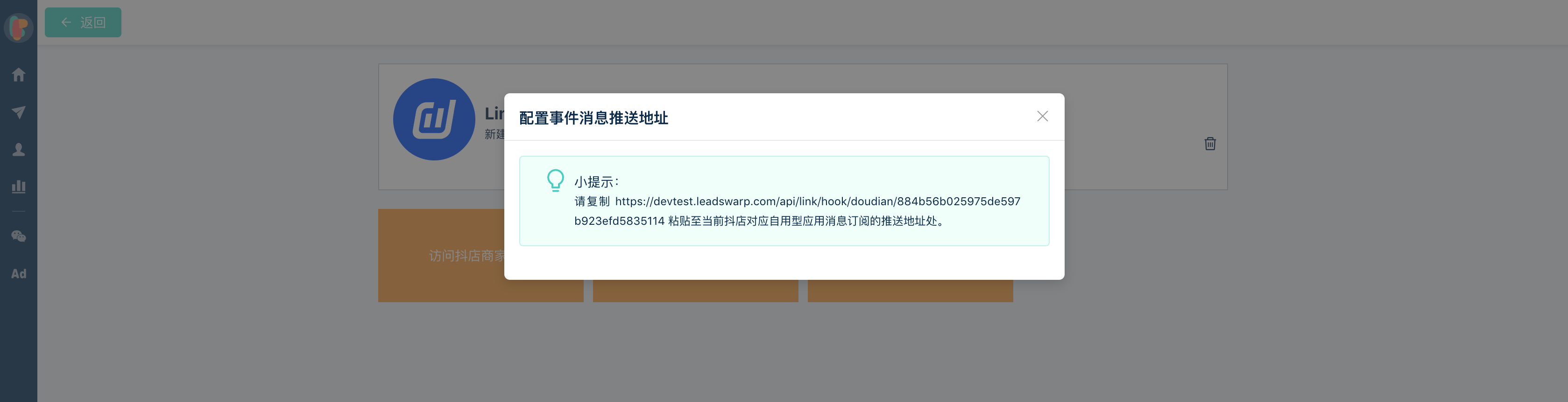 进入抖店应用后台,复制提示中的地址,粘贴进“推送地址”配置项
