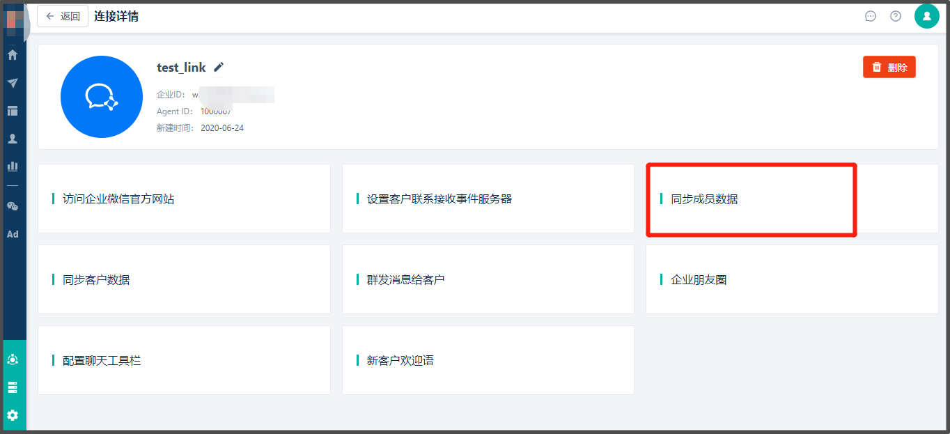 * 路径:【连接管理】> 【企业微信】> 【企业朋友圈】