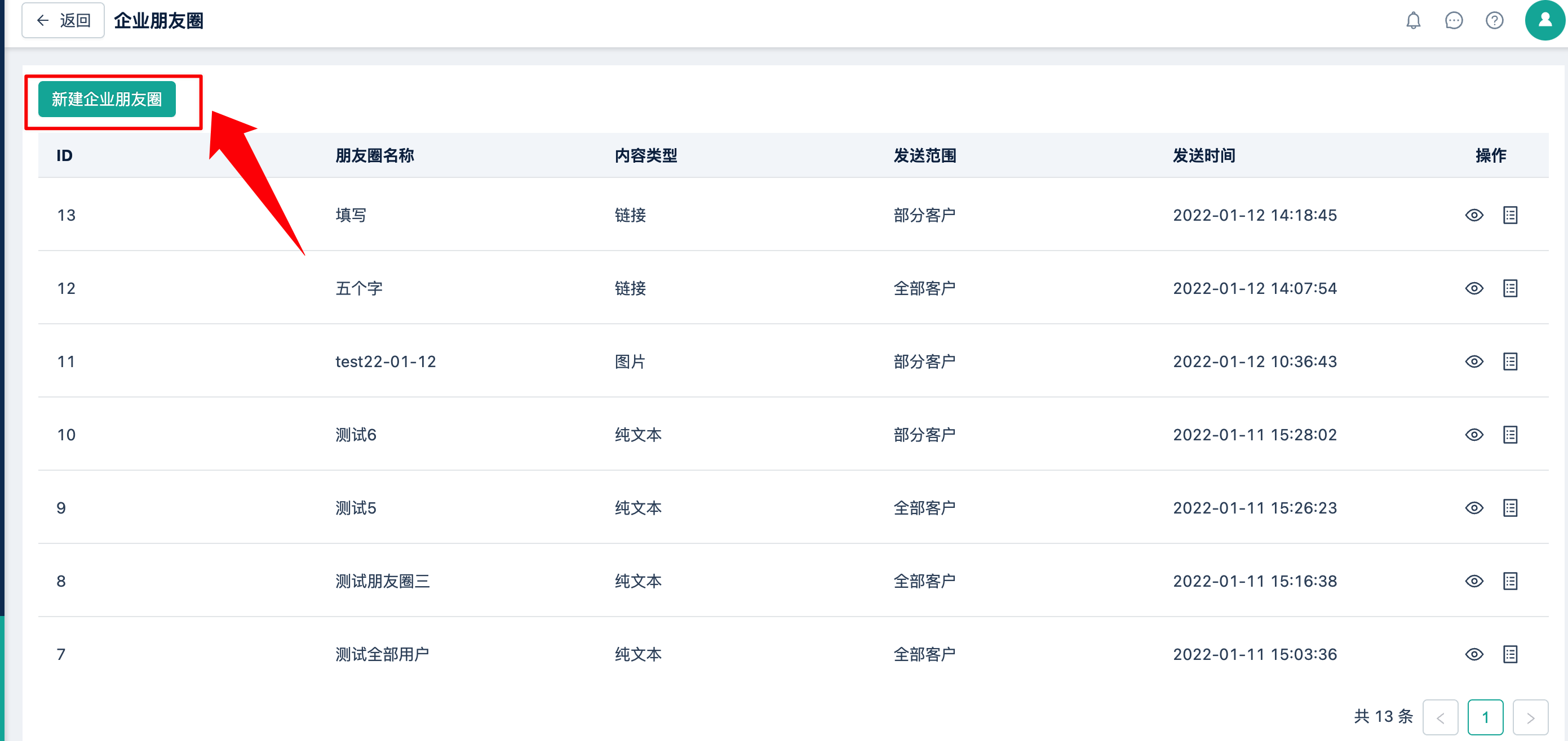 ## 新建企业朋友圈(尚未上线,预计2201R1迭代上线)