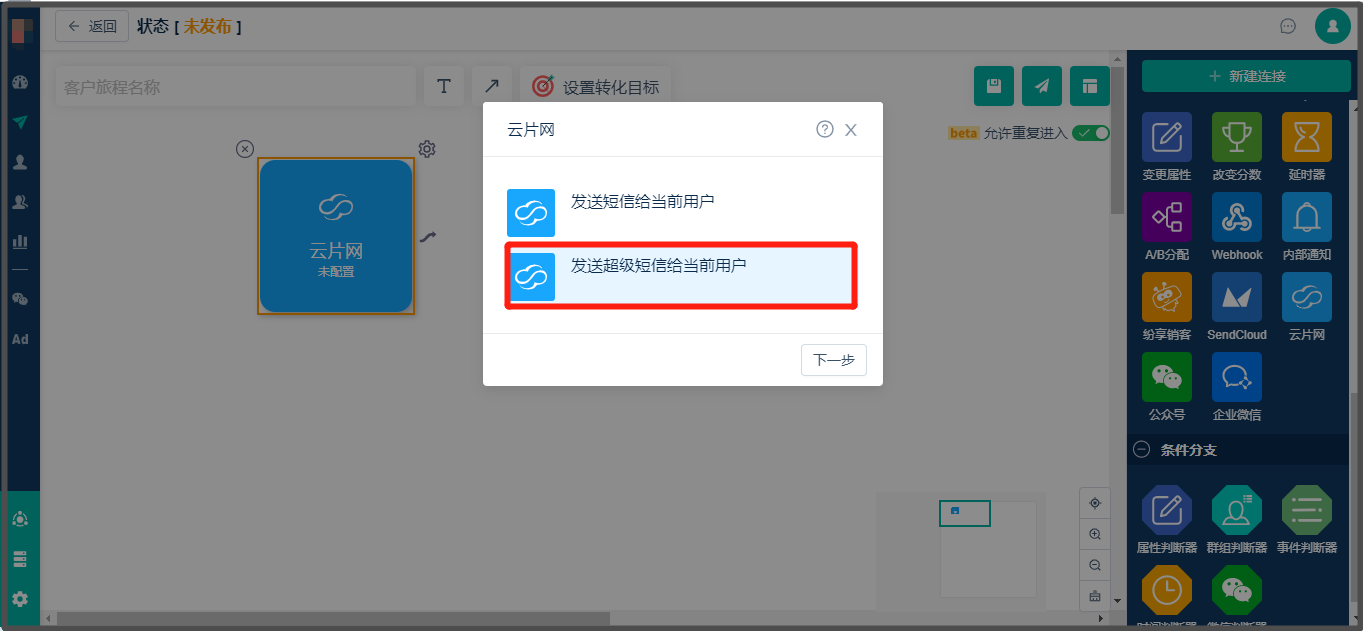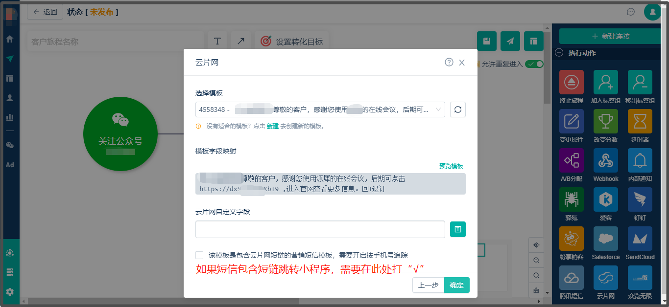 5. 在客户旅程中使用已在系统中维护的超级短信模板