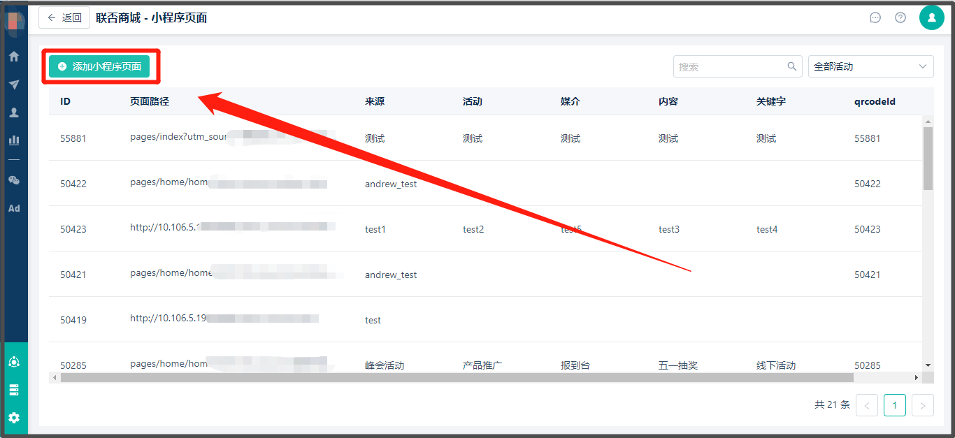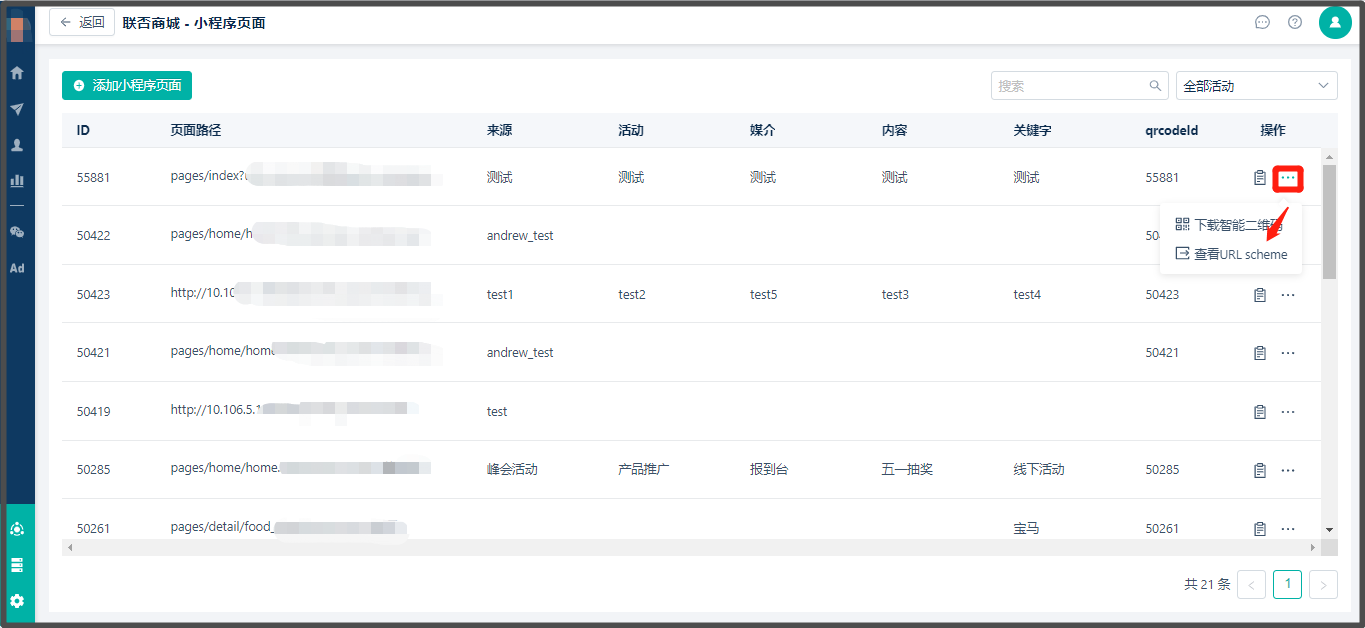 1. 页面是当前所选小程序页面的路径,系统会自动把路径上拼接的utm参数截掉(微信不支持带参路径生成url scheme)