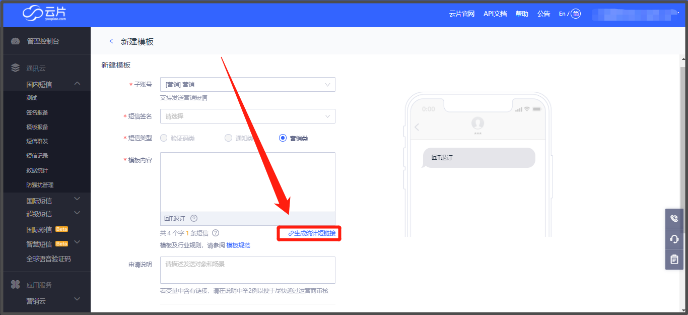 # 如何在云片网中设置支持跳转小程序的短信