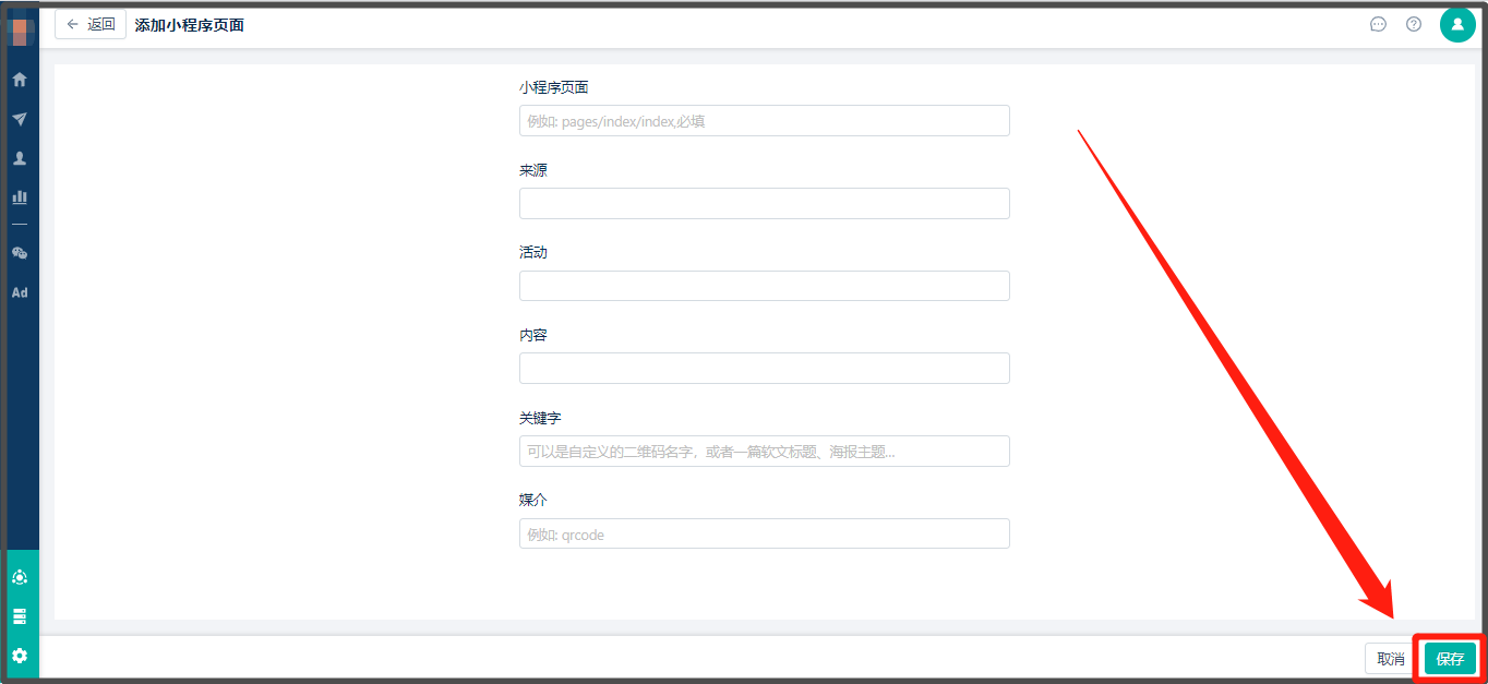 2. 填写【query参数】,可手动填写utm\_source、utm\_campaign、utm\_content、utm\_medium、utm\_term实现小程序utm追踪,例如utm\_source=yunpain&utm\_campaign=168(因为生成url scheme的query参数必须为英文,所以请在创建小程序路径时,也填写英文的utm,这样可以保证追踪结果的一致)