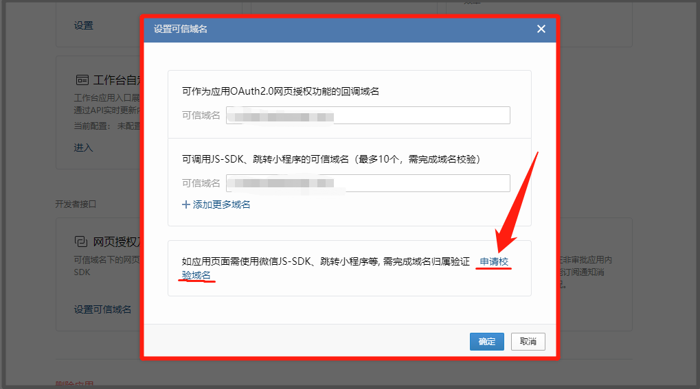 2. 如果完成【1】的配置,但是还是无法获取联系人的属性等信息,可以检查下对接时是否将【用于OAuth2.0回调的可信域名是否校验】选择项打钩,如果没有打钩,需要重新配置;