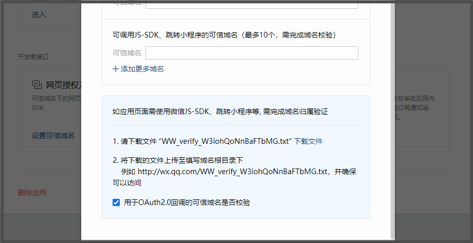 【用于OAuth2.0回调的可信域名是否校验】选择项打钩