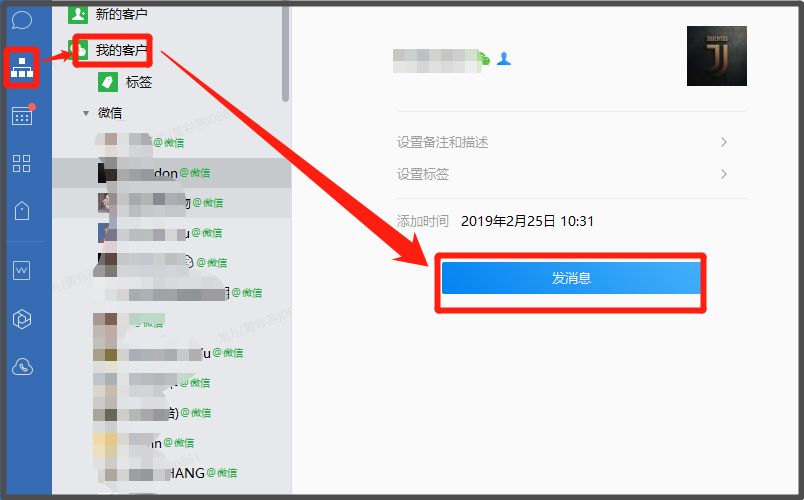 配置成功后,对于自建应用(已经与Linkflow对接的企业微信应用)的【可见范围】授权员工,登录【企业微信客户端】-点击【我的客户】,然后点击任意一个外部联系人,进入聊天界面后,即可开启客户画像聊天工具栏。