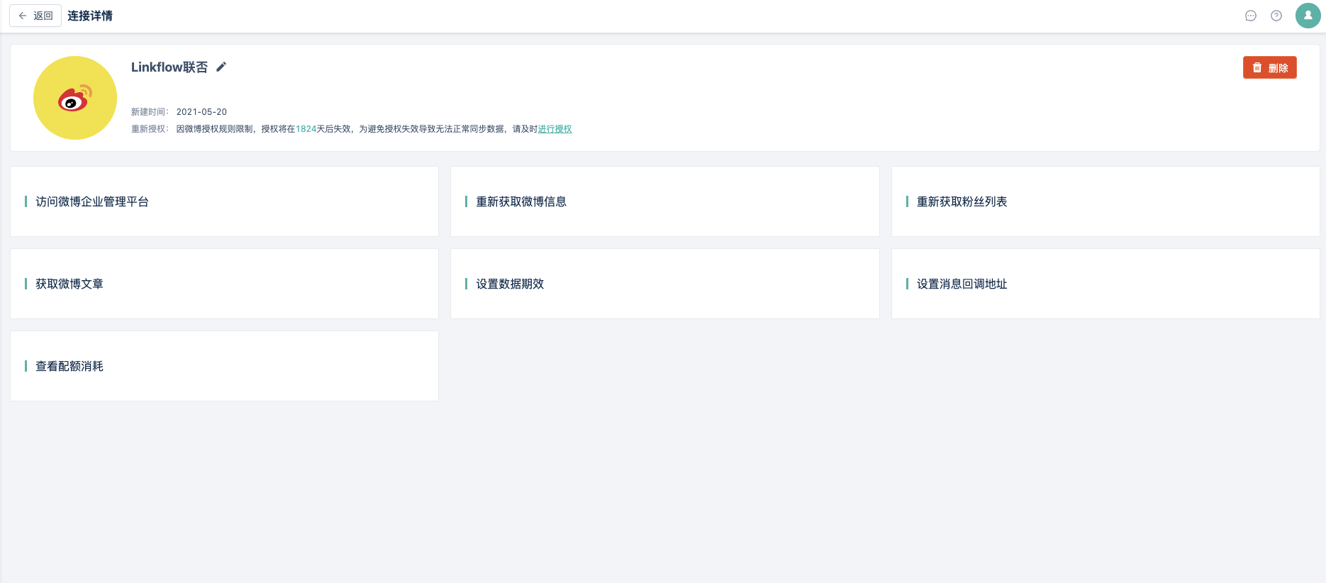 10、连接微博成功后,需要设置消息回调才能接收微博的相关事件消息,详见[设置消息回调](https://help.linkflowtech.com/lfcs/2412839)