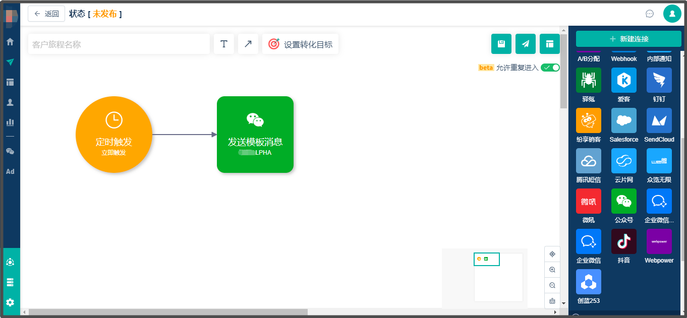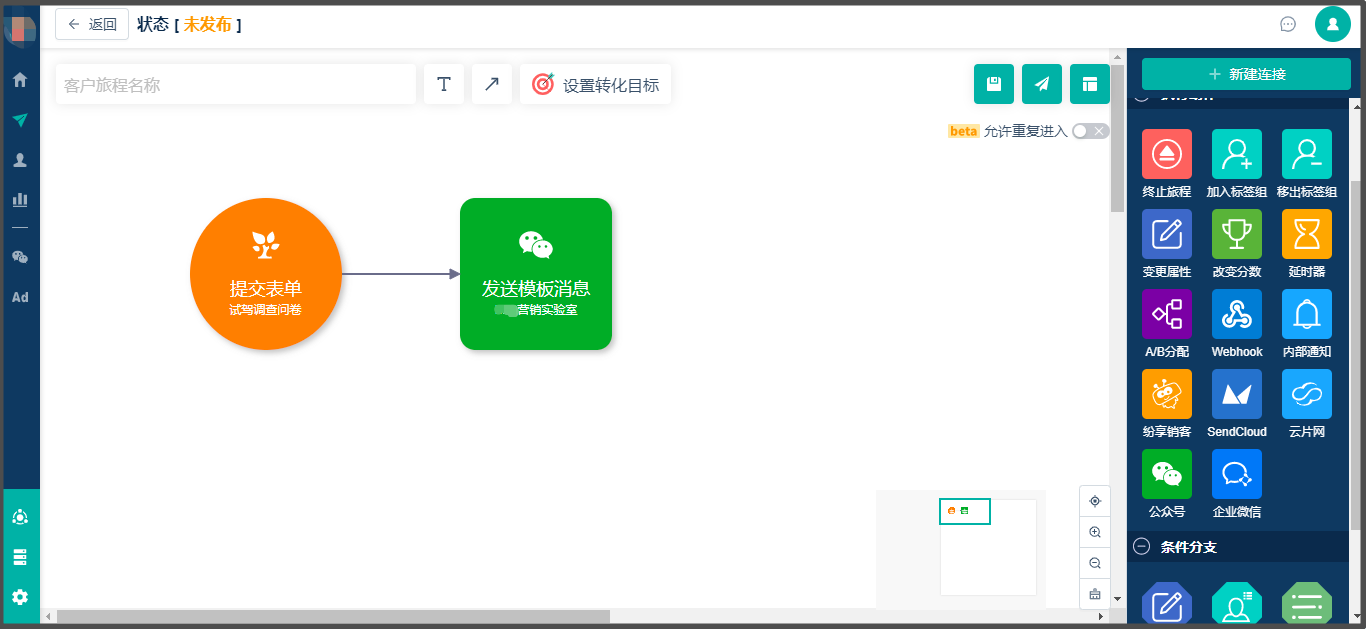 2. 当设置不允许重复进入时,若联系人已经进入过客户旅程,重新编辑客户旅程再发布后,该联系人仍不可再次进入客户旅程。**