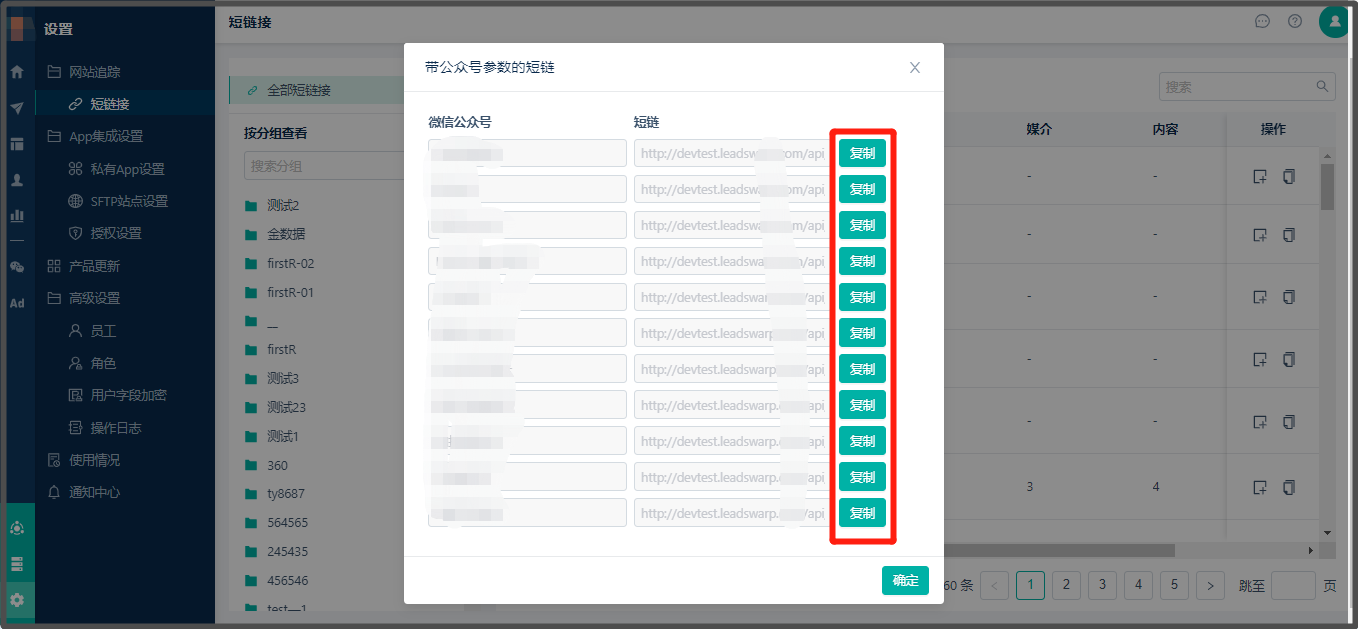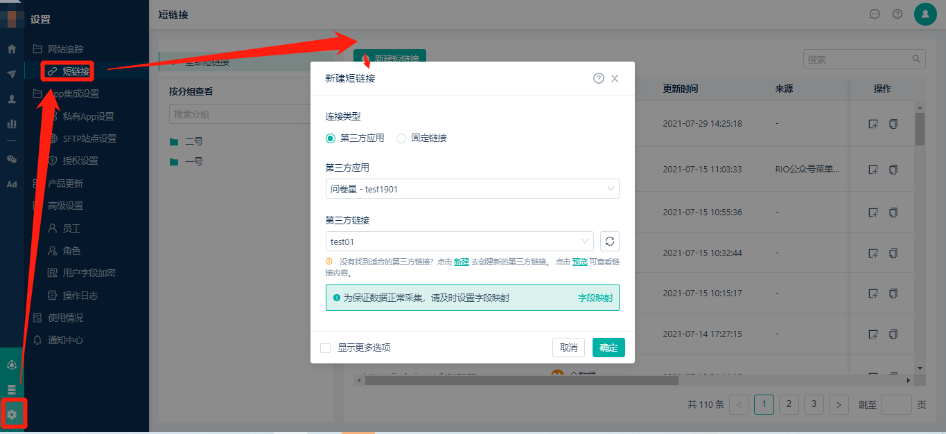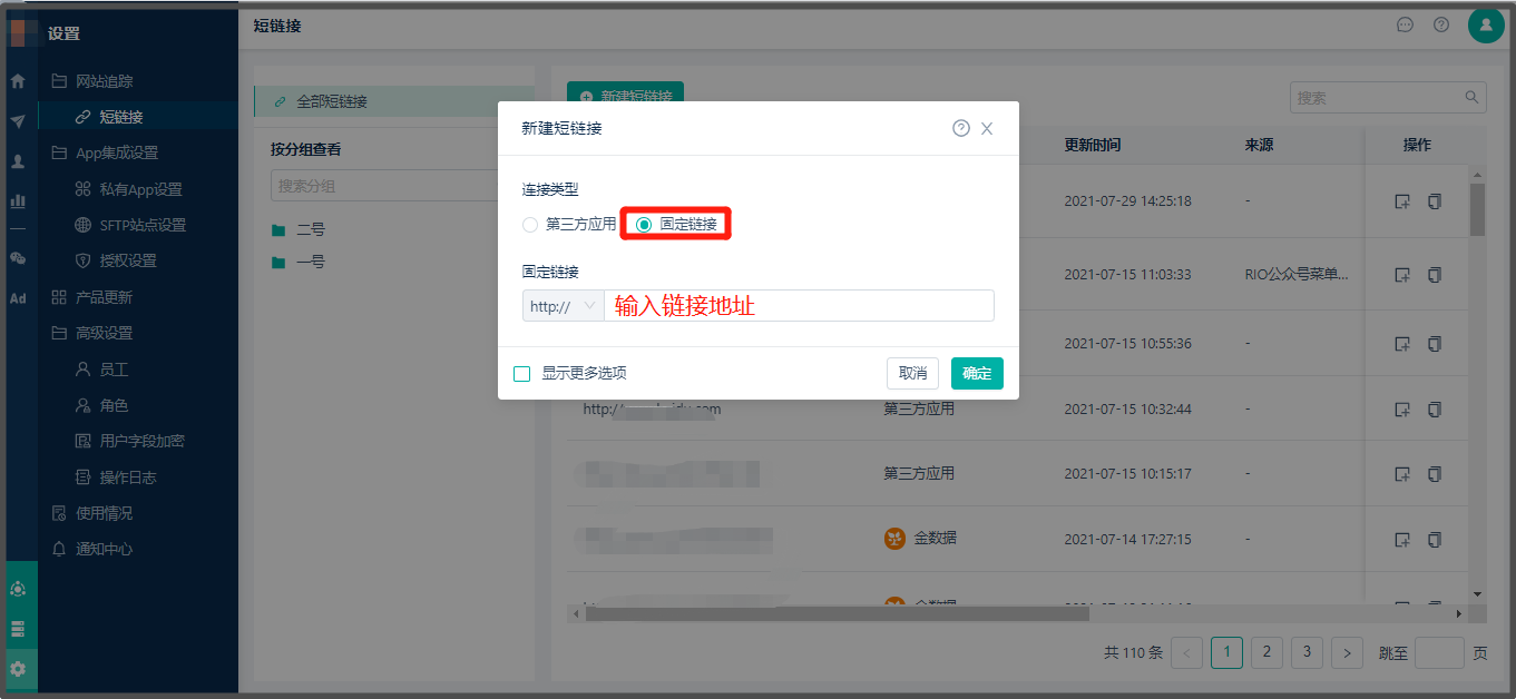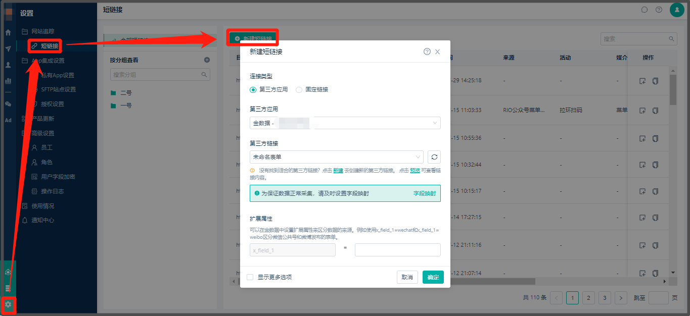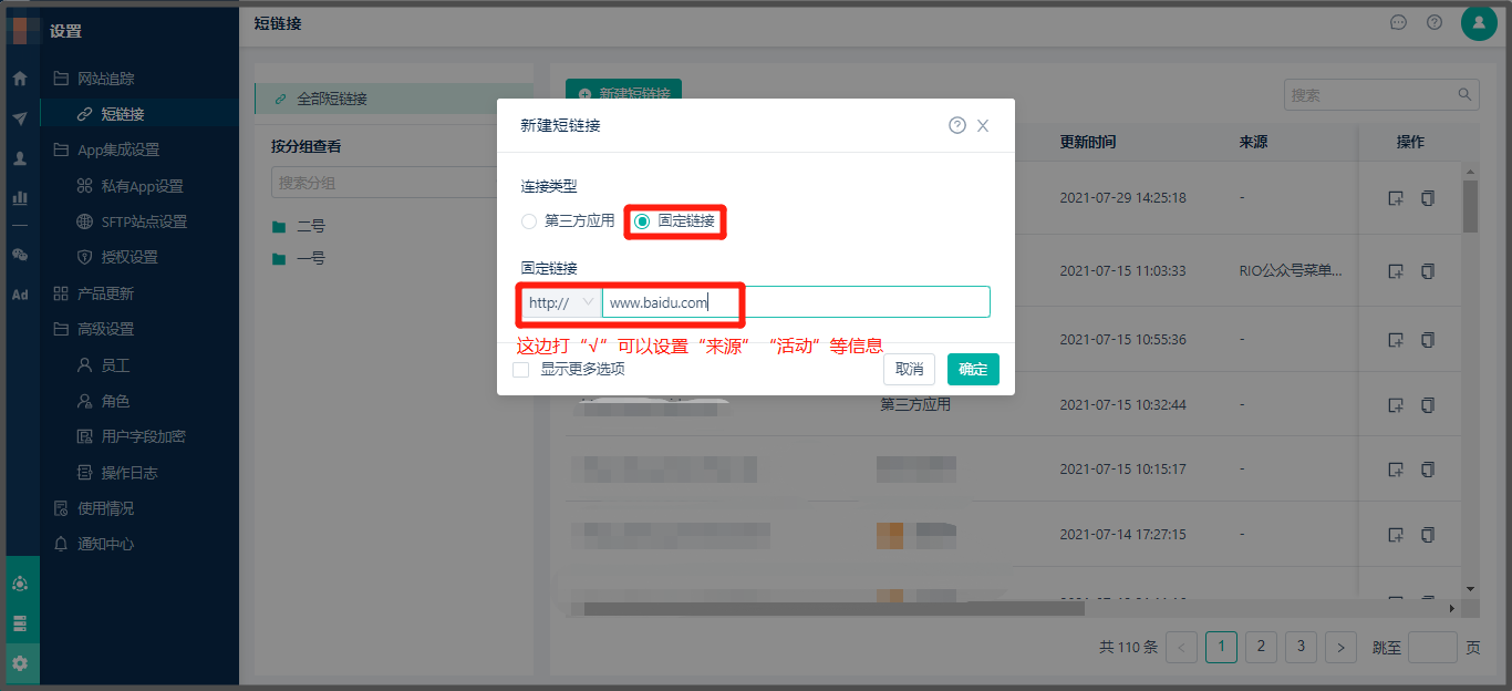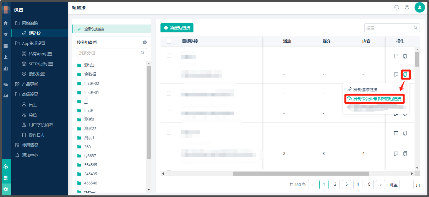 * 创建路径:【设置】> 【网页追踪】> 【短链接】> 【新建短链接】