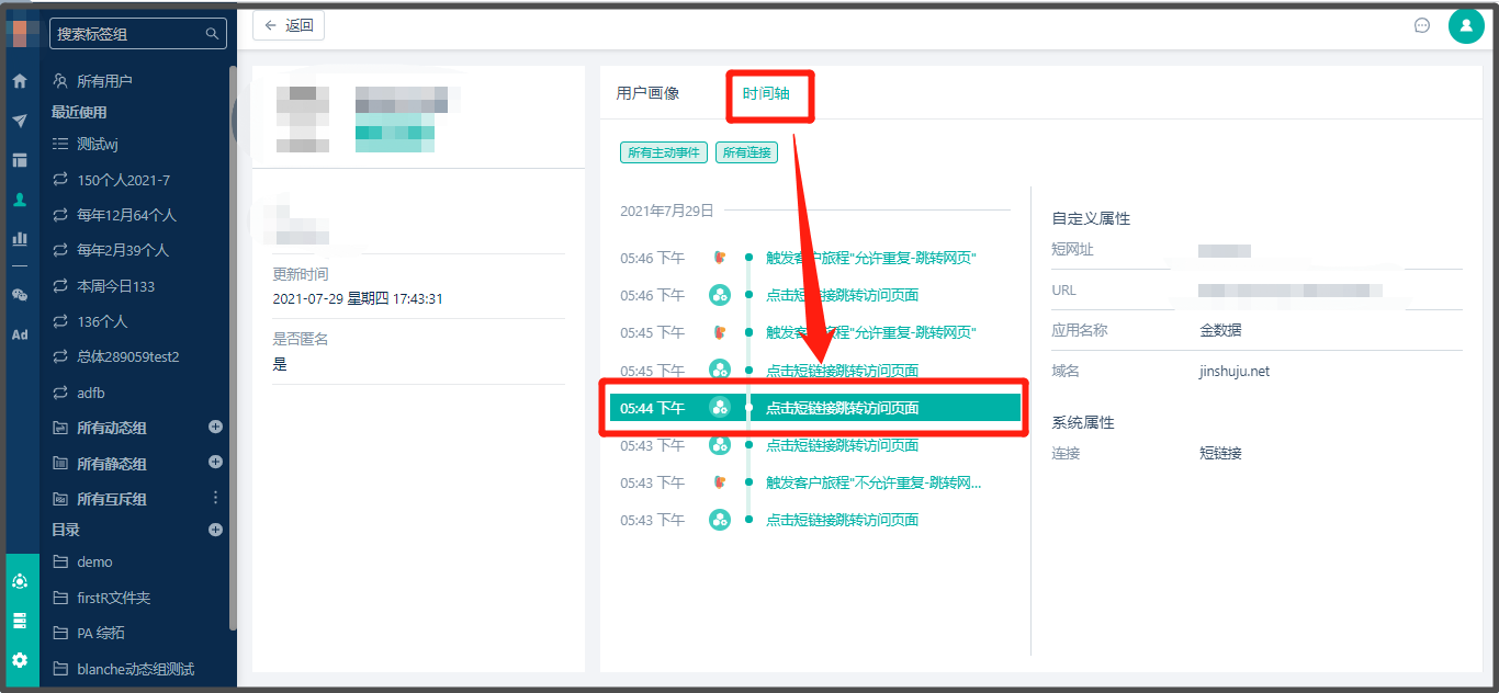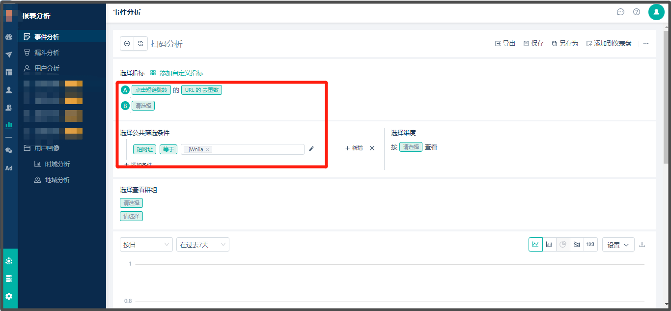 * 通过【报表分析】,创建报表时可以筛选出点击短链接的用户数