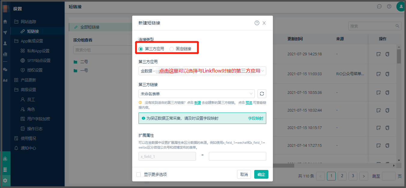 2. 选择第三方应用渠道(与Linkflow已对接的第三方渠道)
