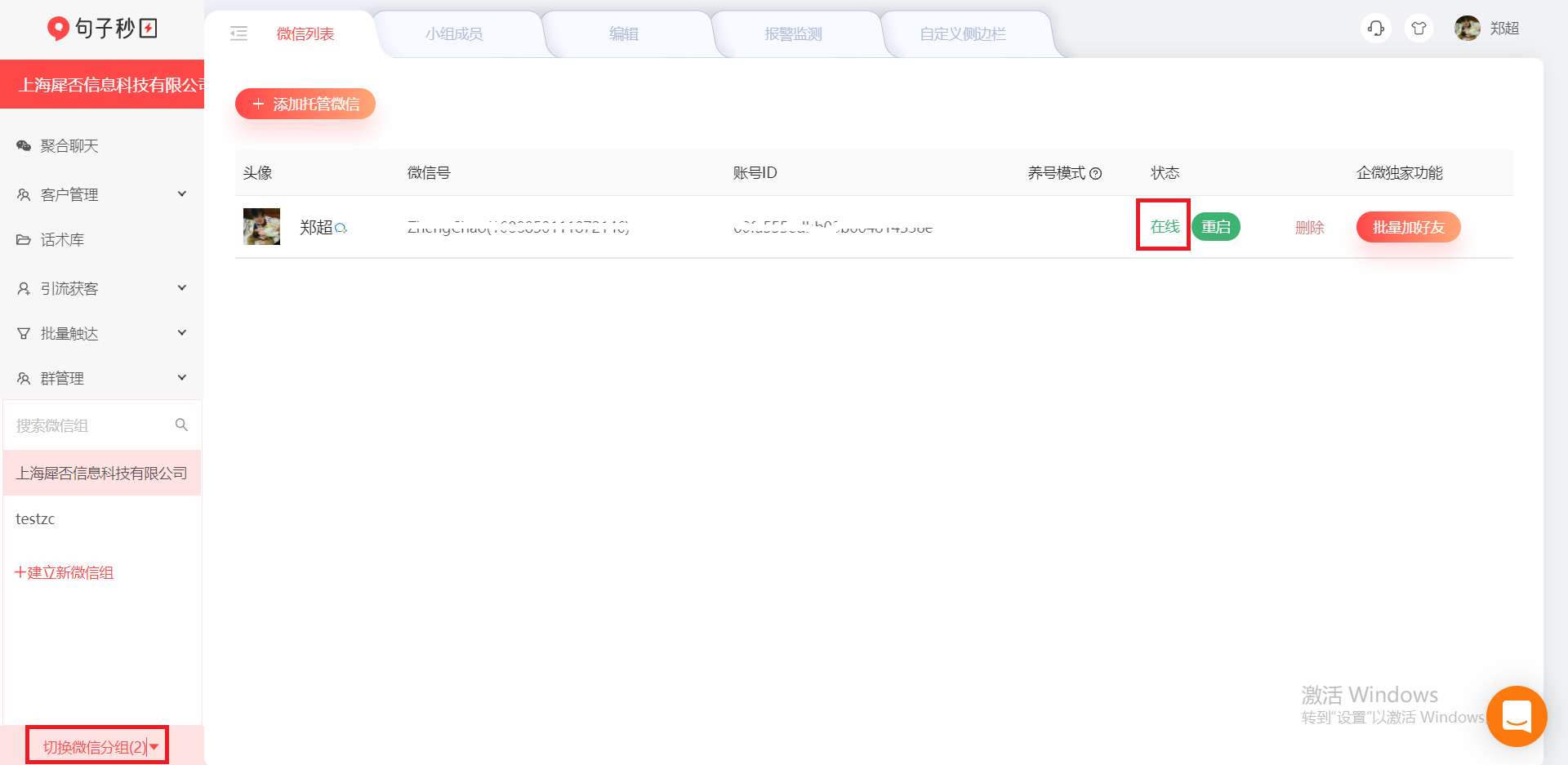 句子互动支持多同一企业设置多个分组做权限隔离,请确保使用正确的分组。
