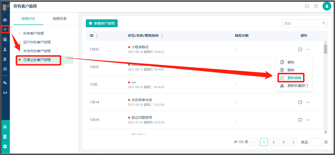 * 只能对【已停止的客户旅程】进行重新编辑