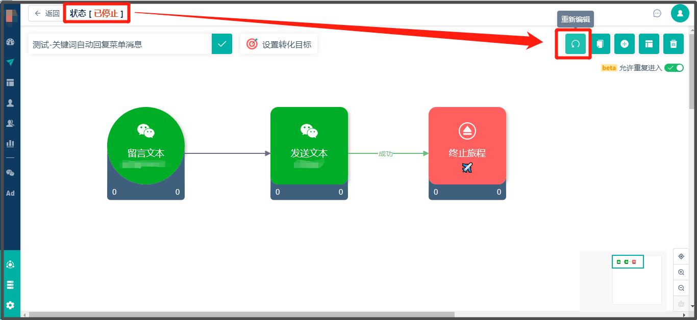 * 打开需要重新编辑的客户旅程,然后点击【重新编辑】