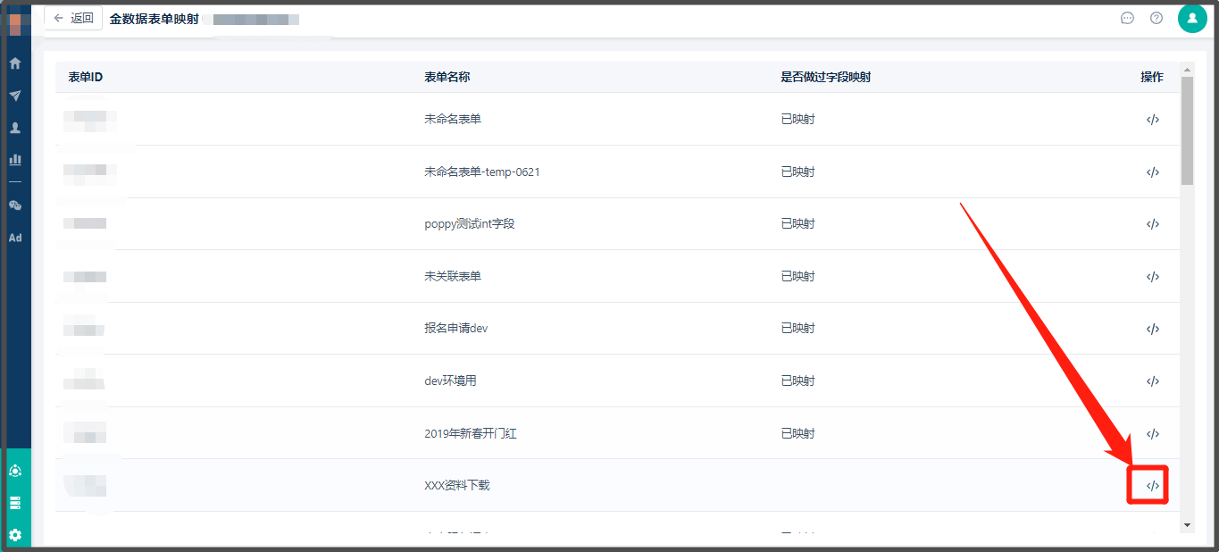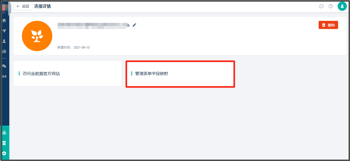 也可以通过【连接管理】> 找到已对接的【金数据】> 【管理表单字段映射】> 找到需要做“字段映射”的表单
