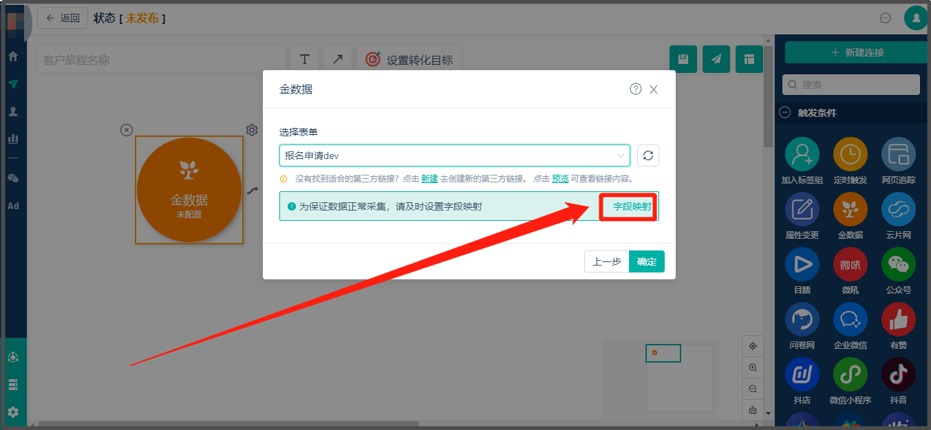 注:如果金数据表单已完成映射,可以直接选择已映射的表单,如果尚未映射,可以直接点击“字段映射”完成,如下: