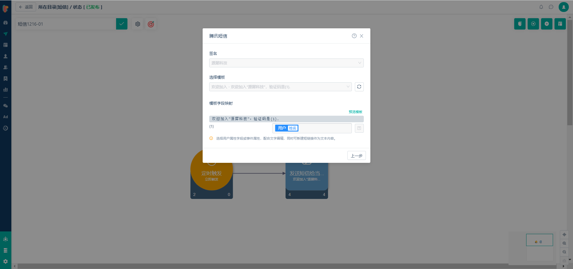 **模板字段映射**:腾讯微信的短信正文模板中的自定义字段可在linkflow里面做配置。腾讯短信接口目前不支持参数中含有链接和短链,详见 [短信 正文模板审核标准 - 审核标准 - 文档中心 - 腾讯云](https://cloud.tencent.com/document/product/382/39023)